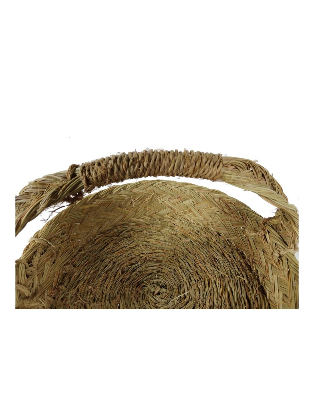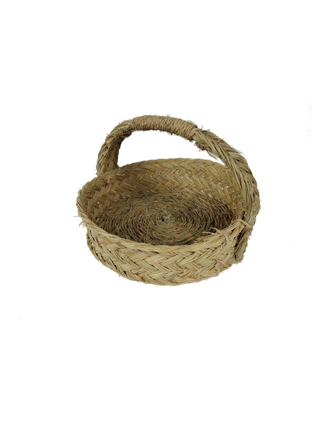 Corbeille à pain ronde avec poignée en sparte faite à la main, vaisselle. Dimensions : 8x Ø 25 cm.