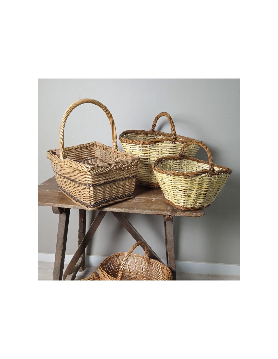 Grand panier en osier de forme rectangulaire et poignée pour prise en main, produit artisanal et national. Panier de construction très solide