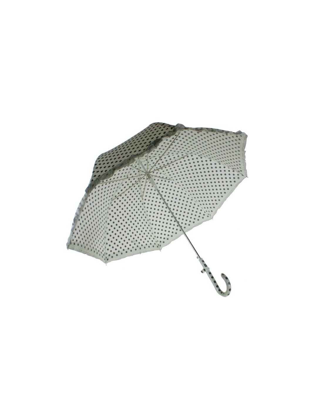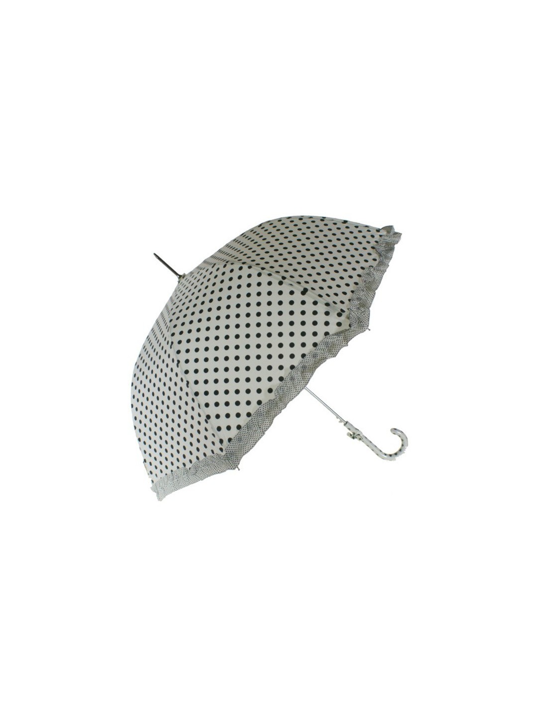 Parapluie de pluie à pois blanc et noir pour femme avec franges assorties Ouverture automatique. Mesures: 90xØ95 cm.