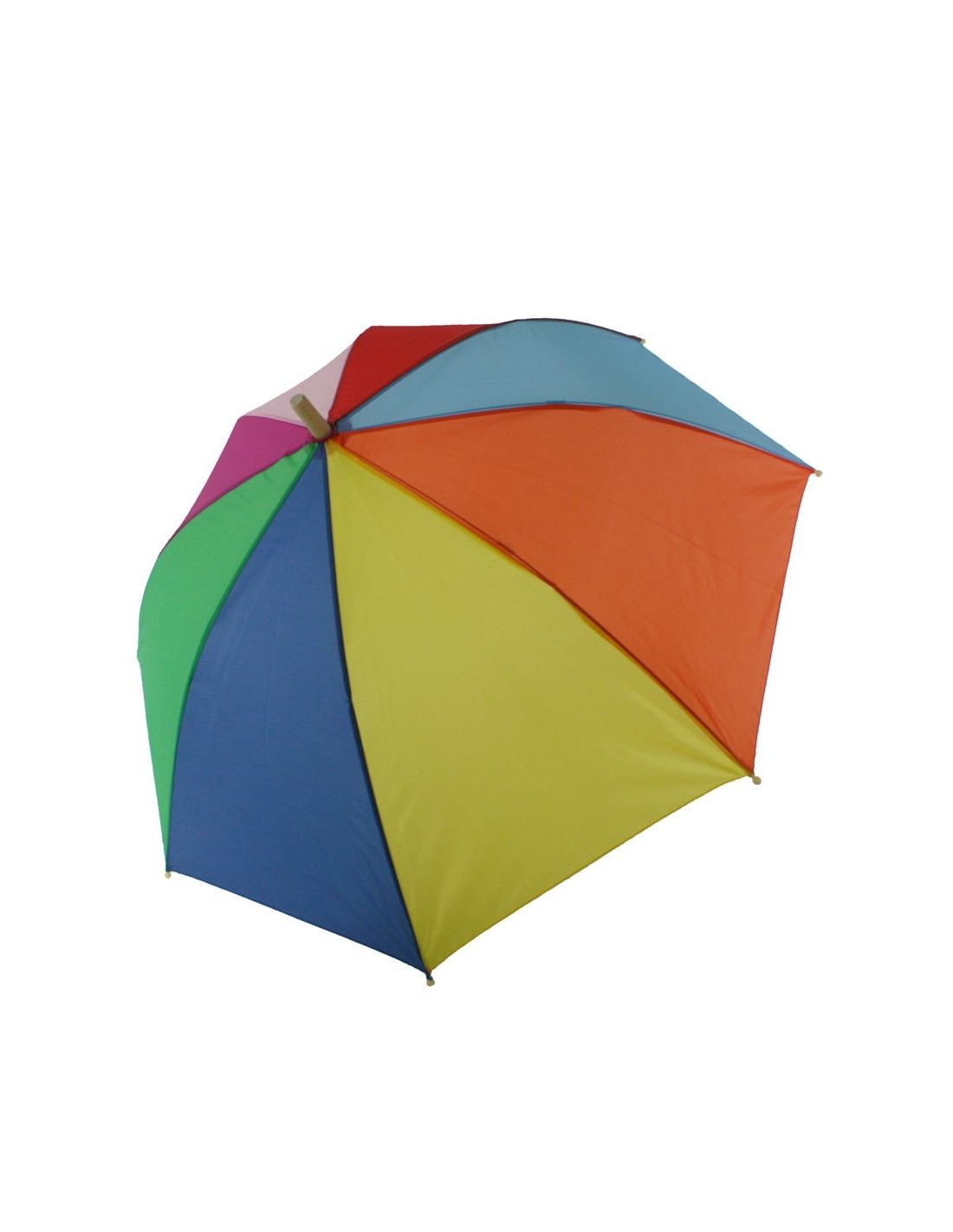 Parapluie enfant arc-en-ciel multicolore avec figurine en bois sur poignée pour garçon fille. Mesures: 75xØ90 cm.