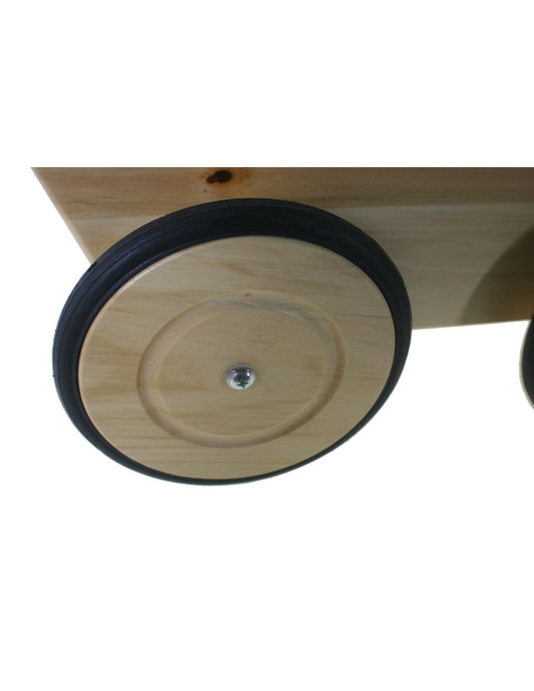Poussette de poupée en bois naturel aux formes arrondies, solide et avec des roues en caoutchouc pour un fonctionnement silencieux. Pour une promenade avec votre baby doll. La poussette a une literie imprimée en bleu incorporée et est une poussette à admirer.