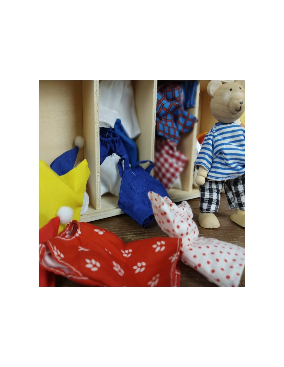 Ours articulés en bois avec ensembles de vêtements - Jeu didactique pour enfants.