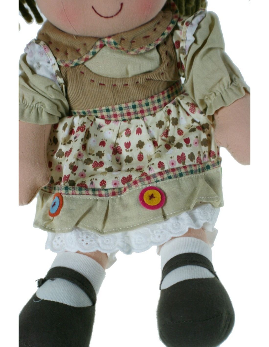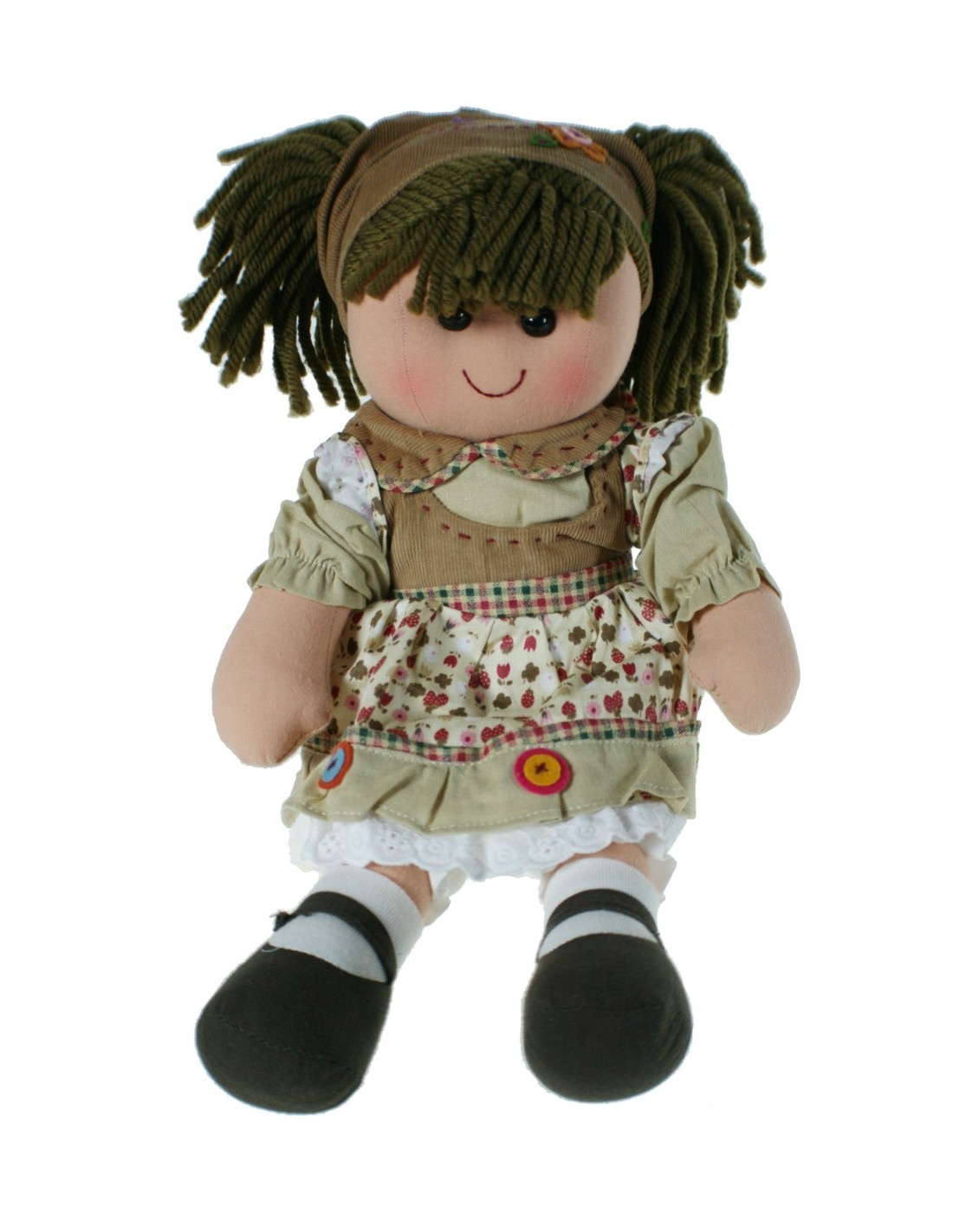 Poupée de chiffon Sonia avec des couettes marron.