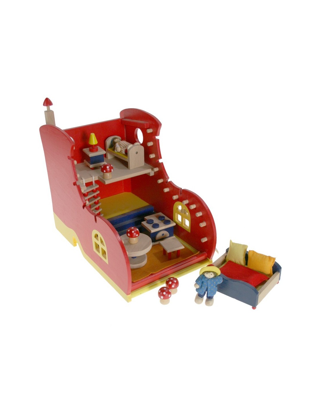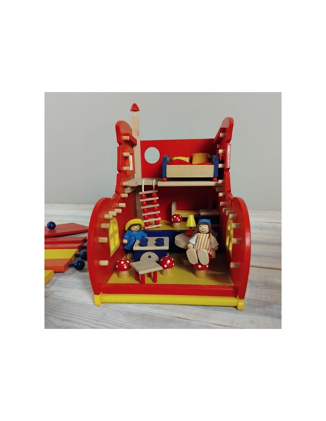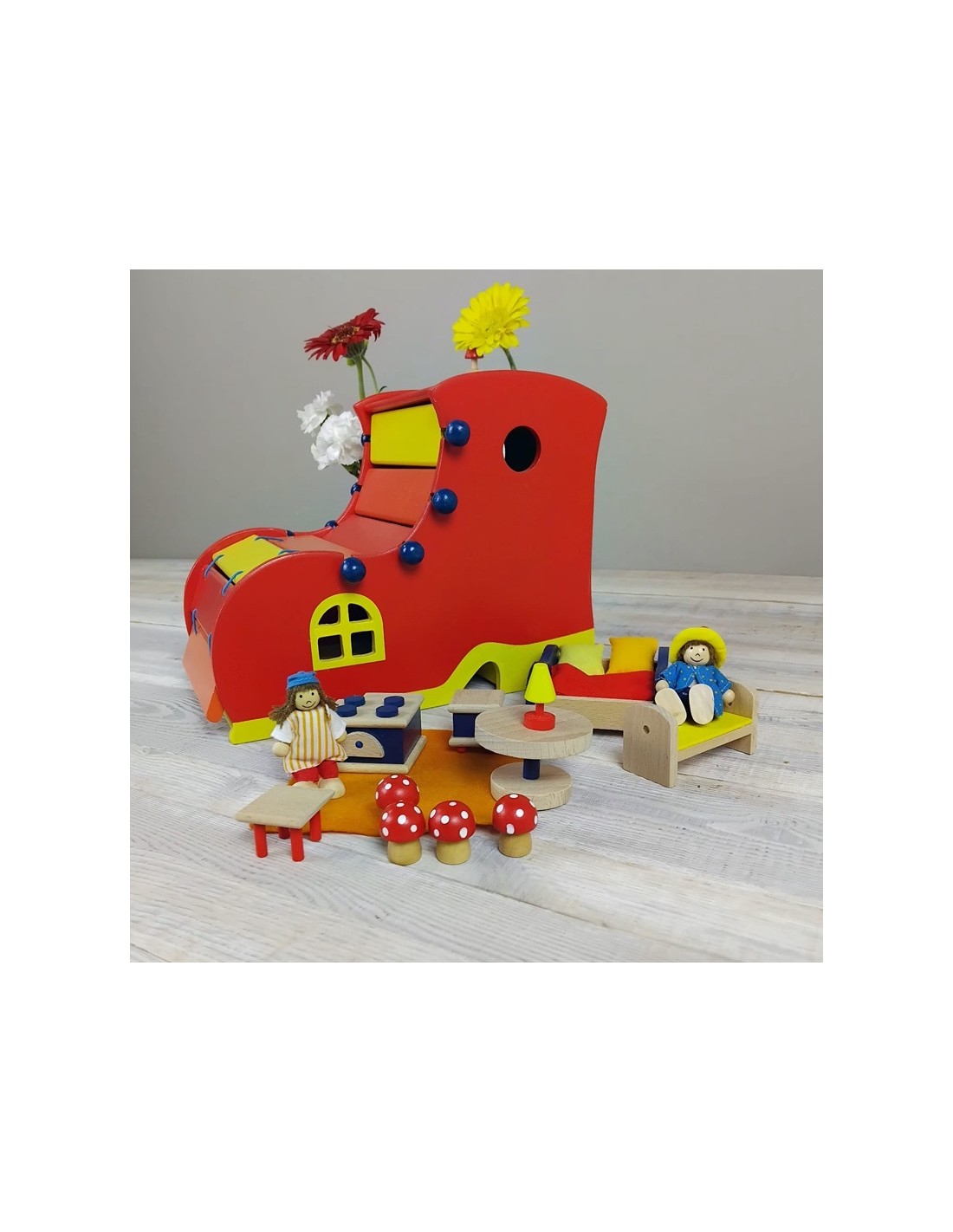 Une maison de poupée amusante et originale, entièrement en bois massif et peinte de couleurs vives. Sa forme en forme de chaussure attire non seulement l'attention, mais permet également de la fermer et de la transporter facilement. Un jouet que les petits adoreront tout en développant leur imagination et leur motricité.