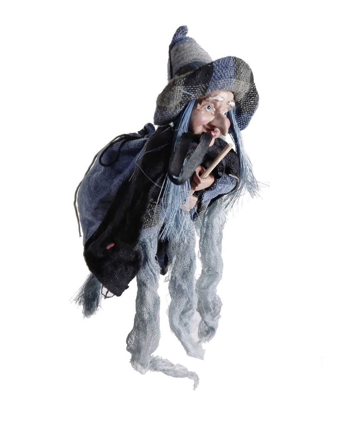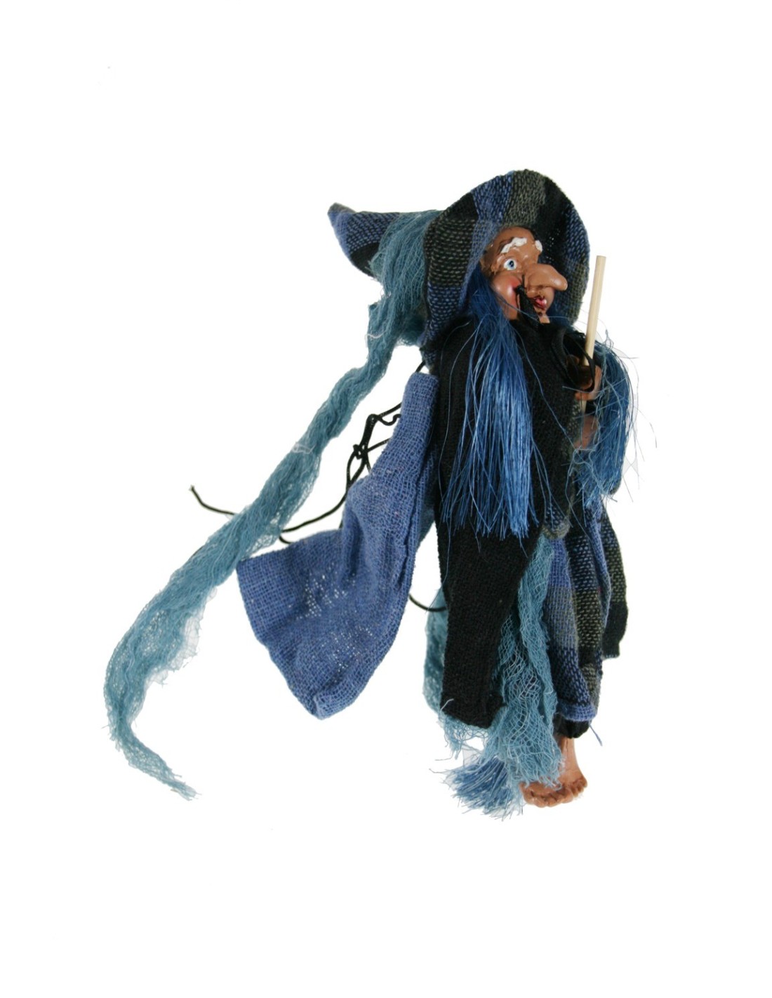 Petite sorcière à suspendre Couleur bleue Charme mystique et énigmatique Décoration d'intérieur. Dimensions : 18x8x8 cm.