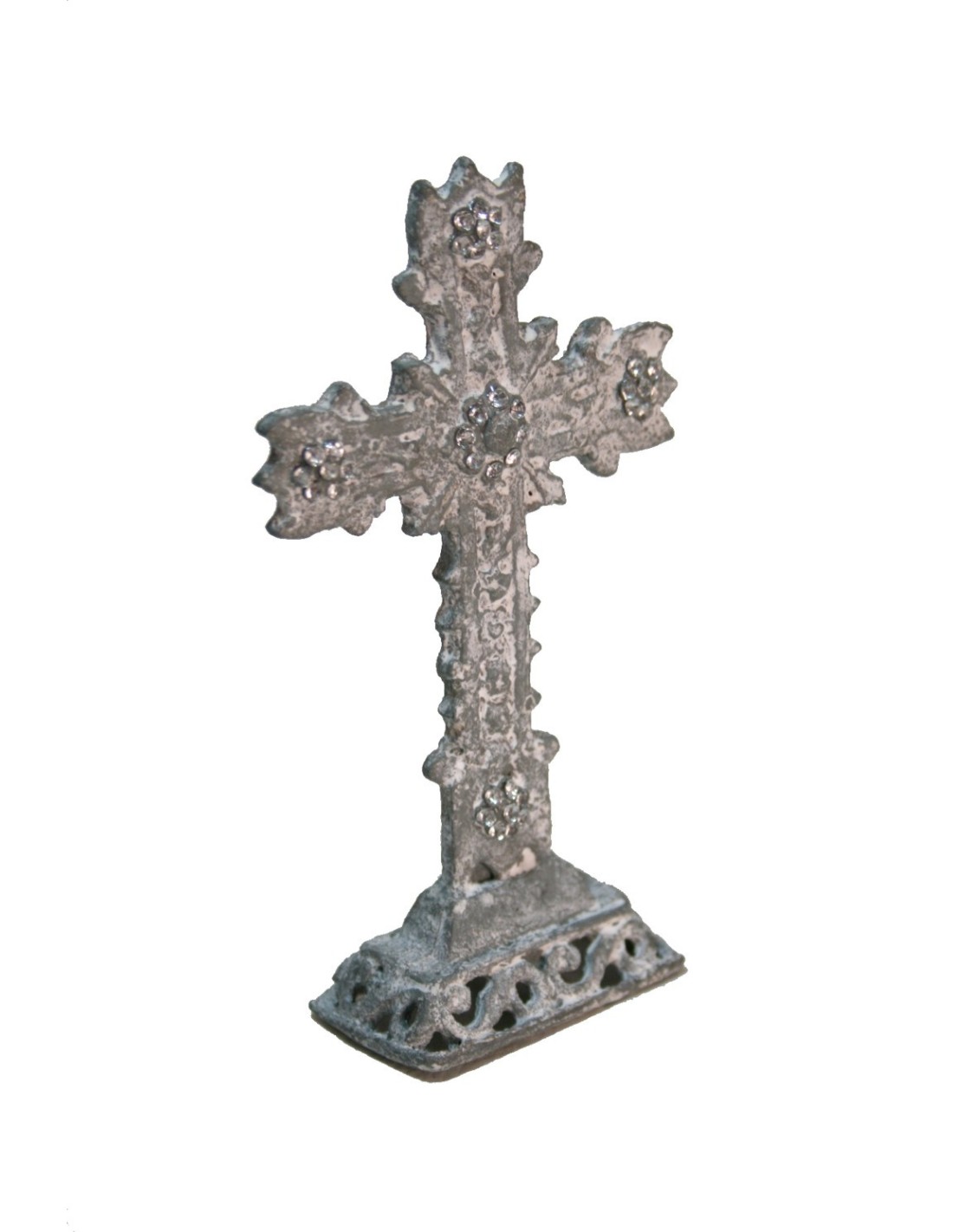 Croix de table en métal avec applications en strass.