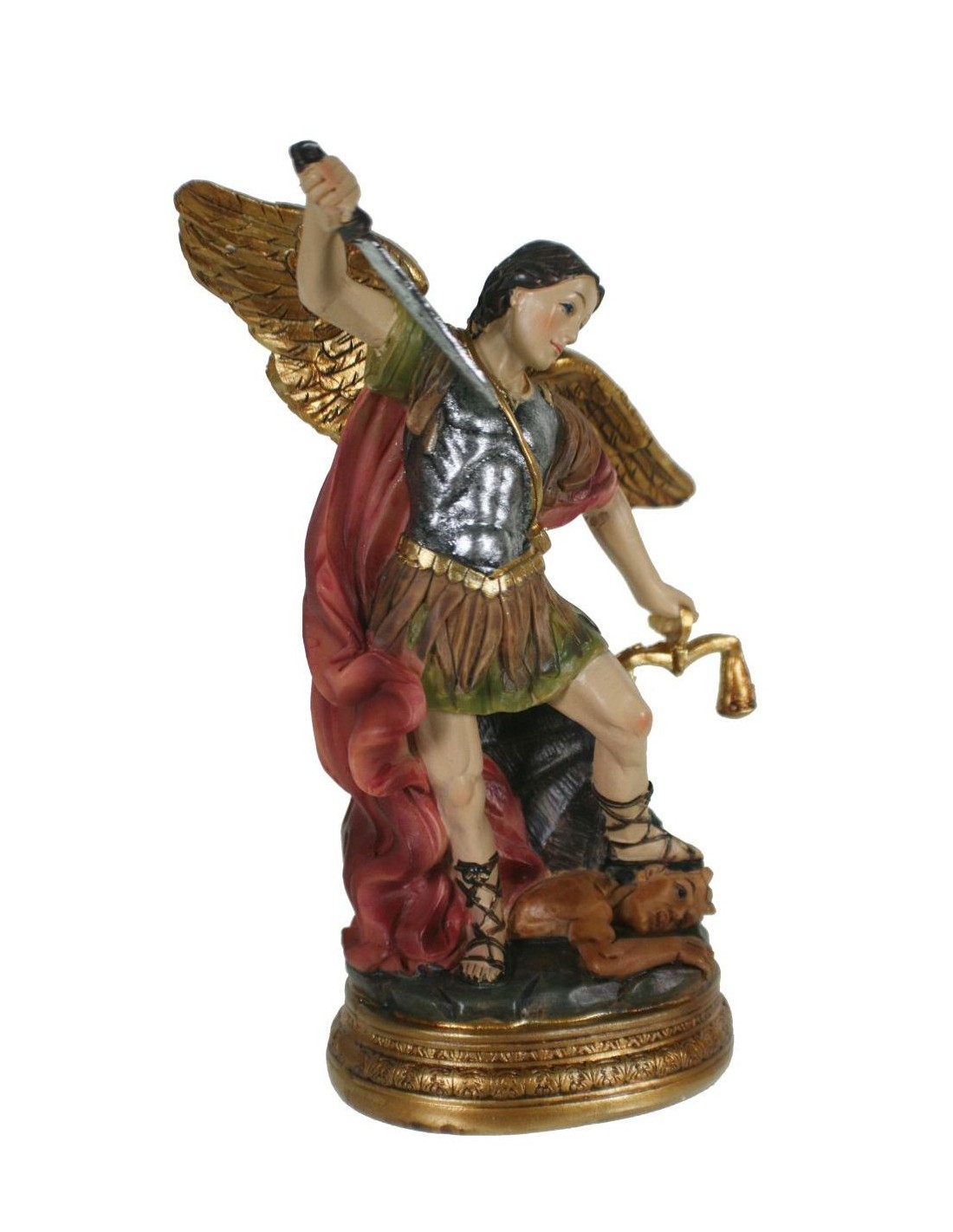 Statue Figure Religieuse de Saint Michel Culte Peinte à la Main Décoration de la Maison. Dimensions : 13x8x6 cm.