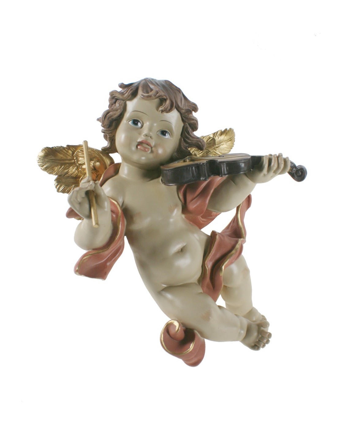 Figure Décorative Religieuse Ange Jouant du Violon pour la Décoration de la Maison Murale en Résine. Dimensions : 26x20x21cm.