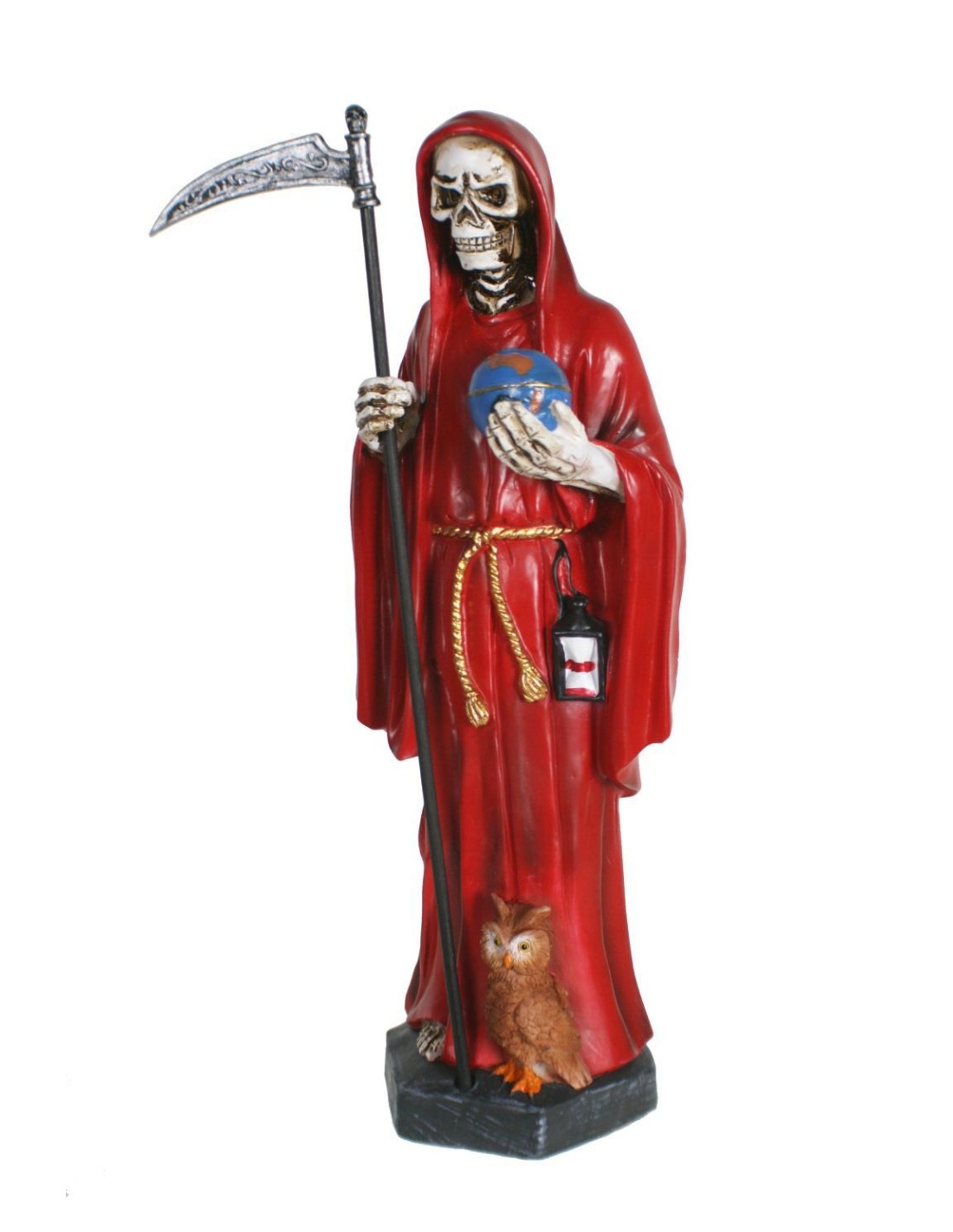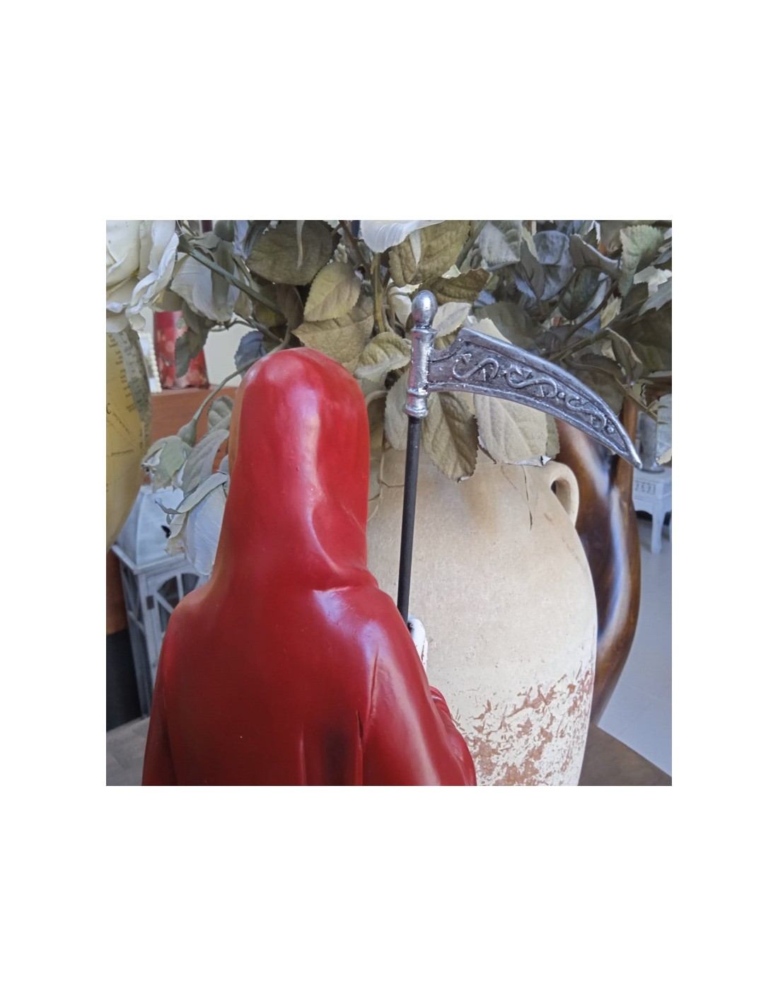 Figure Statue de la Santísima Muerte décoration de la maison peinte à la main de couleur rouge. Dimensions : 39x14x11cm.