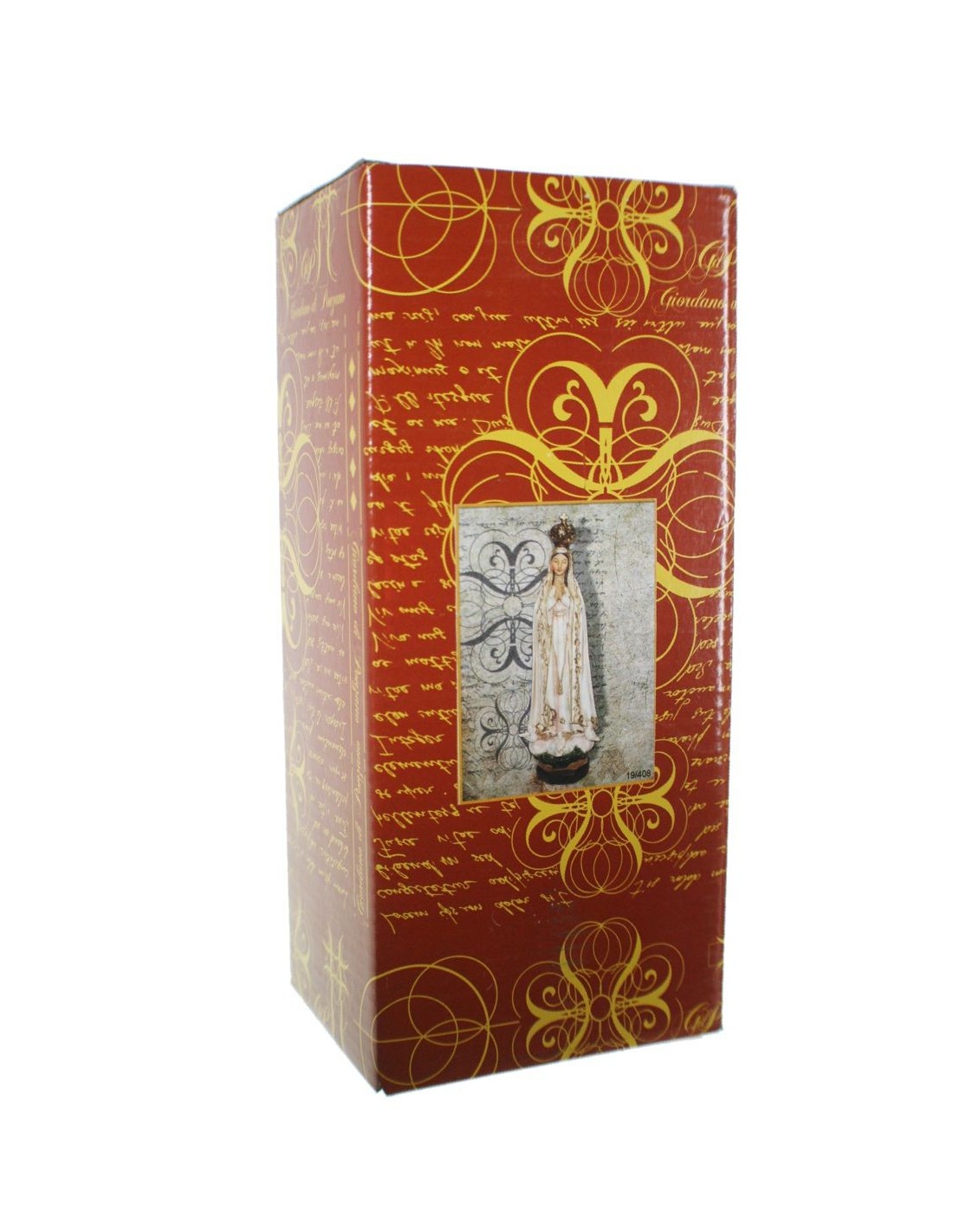 Vierge de Fatima figure religieuse de culte et de dédicace sculptée en matériau céramique avec étui. La Vierge de Fatima est une invocation du catholicisme avec laquelle la Vierge Marie, mère de Jésus, est vénérée