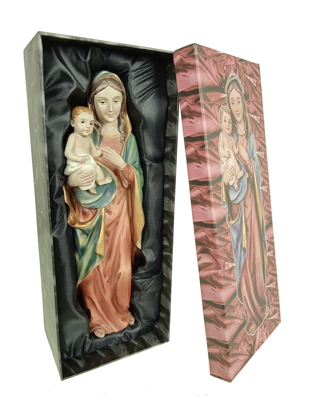 Figure Vierge à l'Enfant ou Madone avec L'enfant Jésus Dans ses Bras Statue Religieuse Peinte à la Main. Mesures : 31 cm.