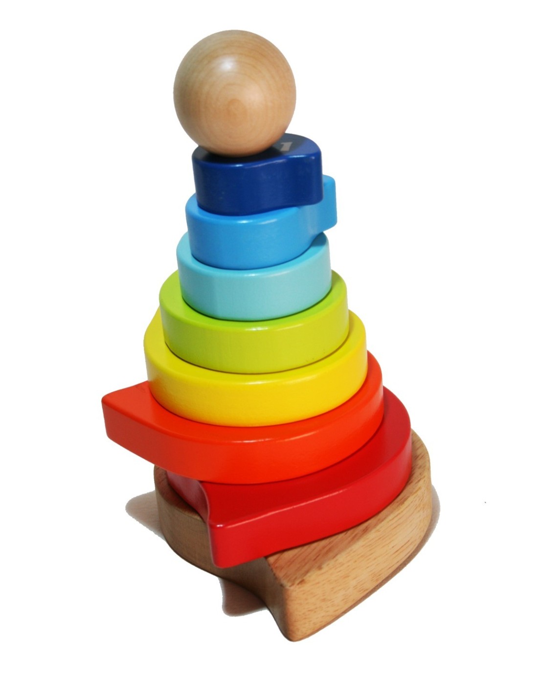 Puzzle en bois massif laqué de manière écologique, de 8 pièces en forme de goutte. Il nous permet de travailler la motricité : monter, démonter, empiler, emboîter, corder... On découvre aussi les tailles et les couleurs..., et on le fait en se familiarisant avec le toucher du bois.