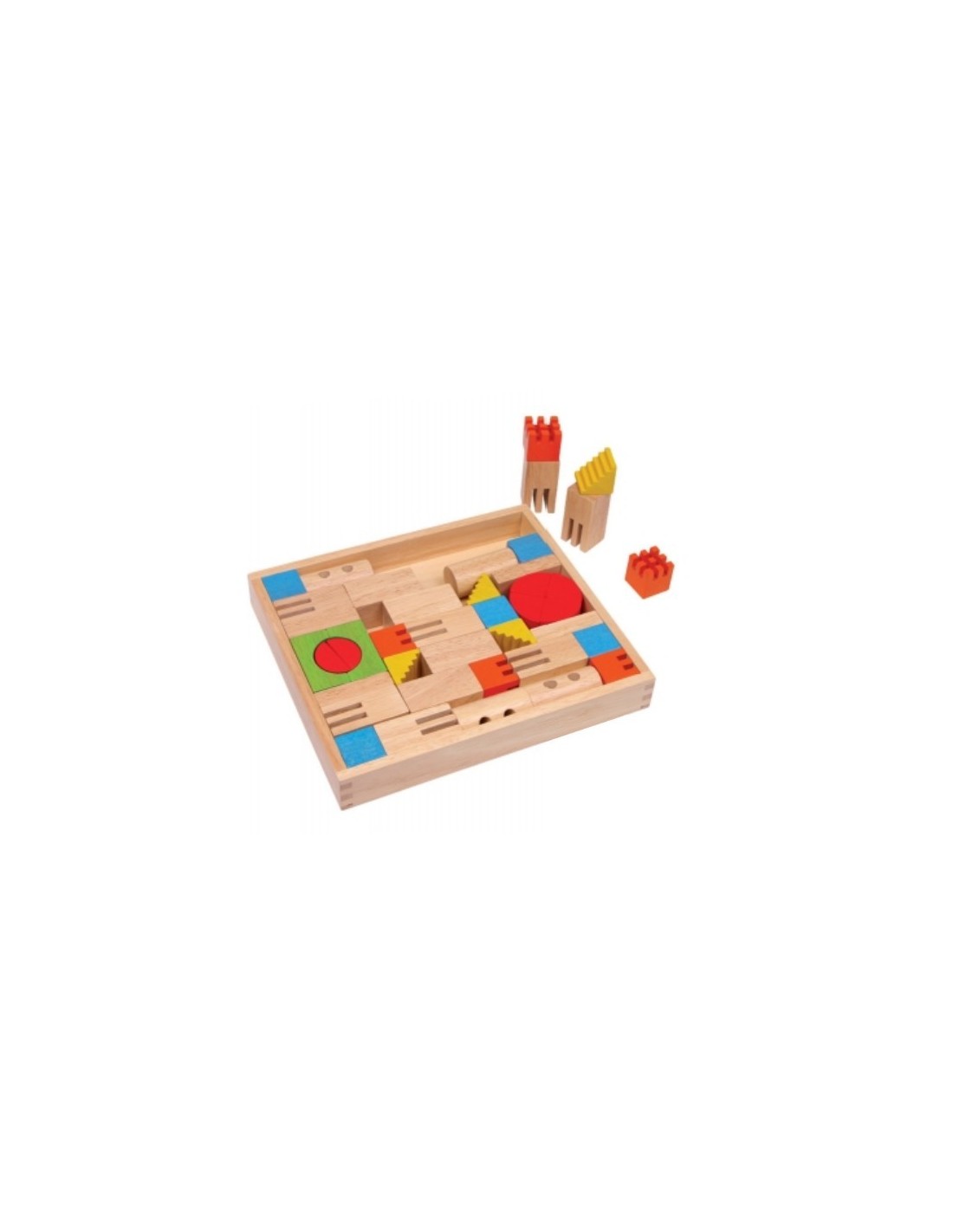 Ensemble de pièces en hêtre massif aux couleurs et aux teintes naturelles pour construire, assembler et créer. Un jeu qui stimule l'imagination, la patience et la coordination.