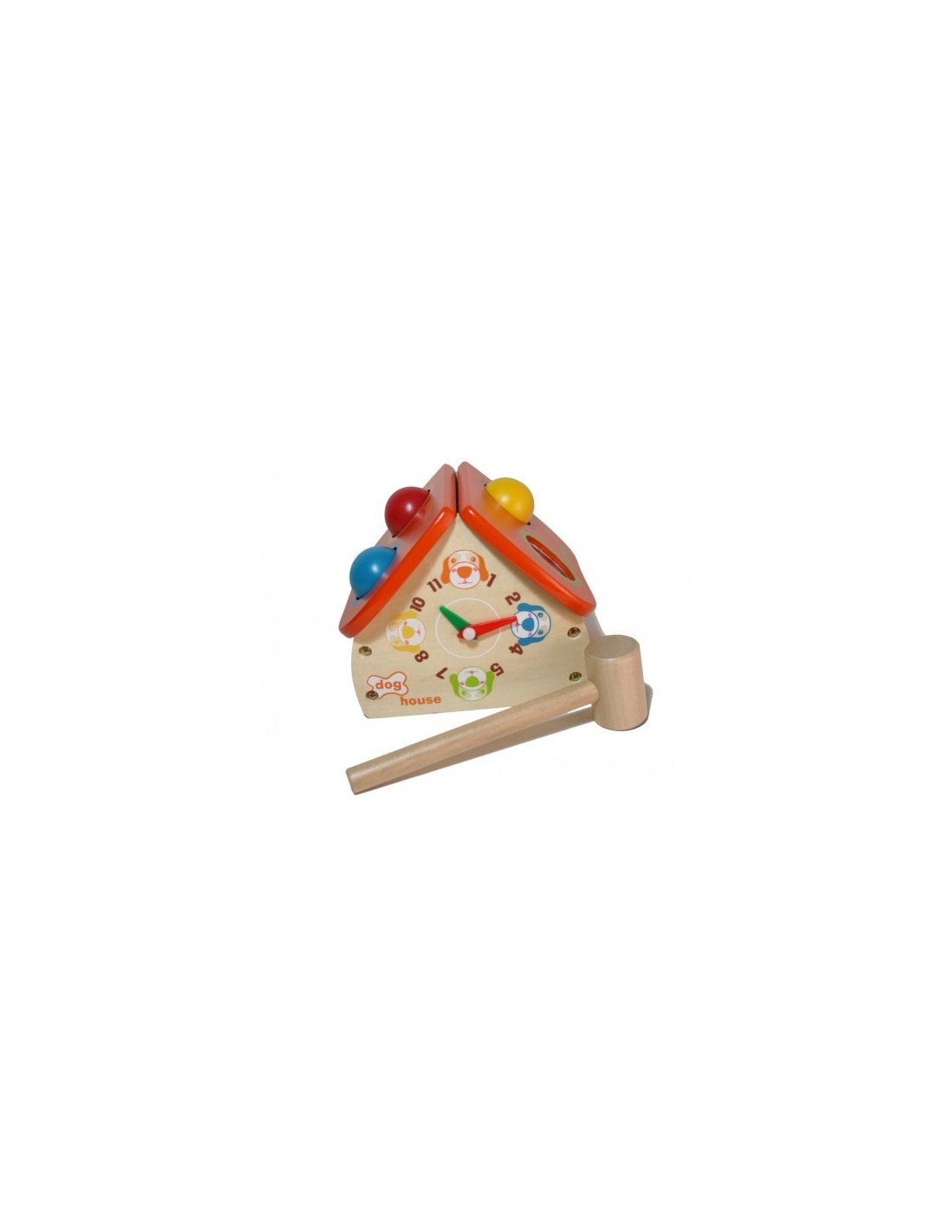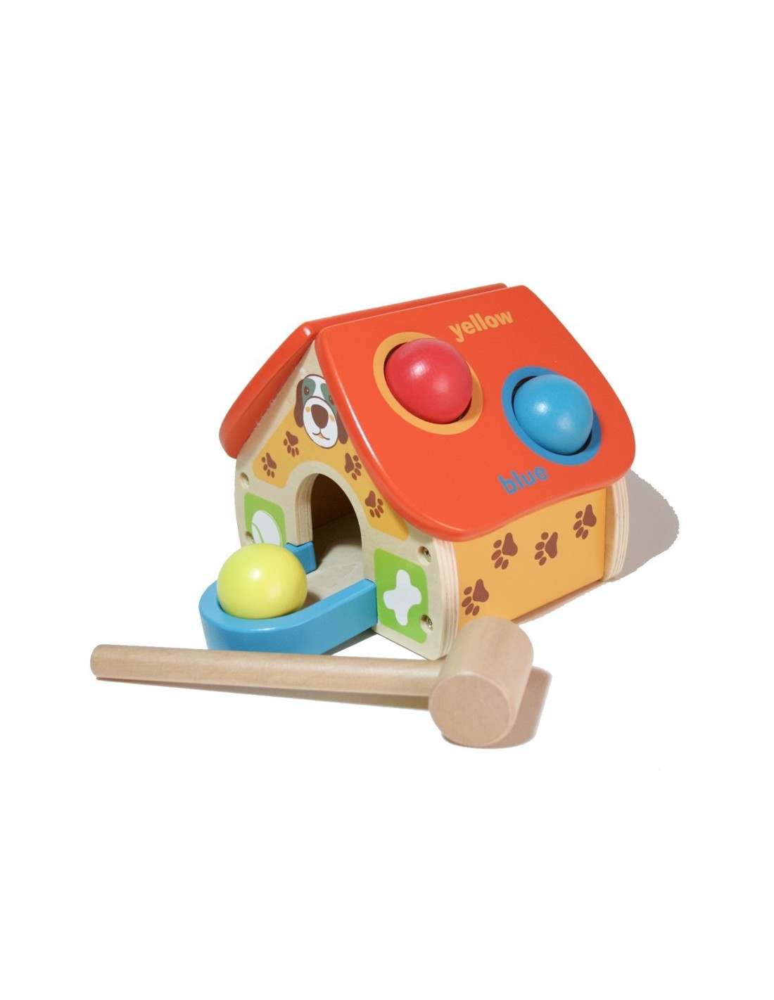 Maison pour frapper et ajuster des balles bois les colorées pour le jeu de moteur bébé. Dimensions:14x17x21cm.