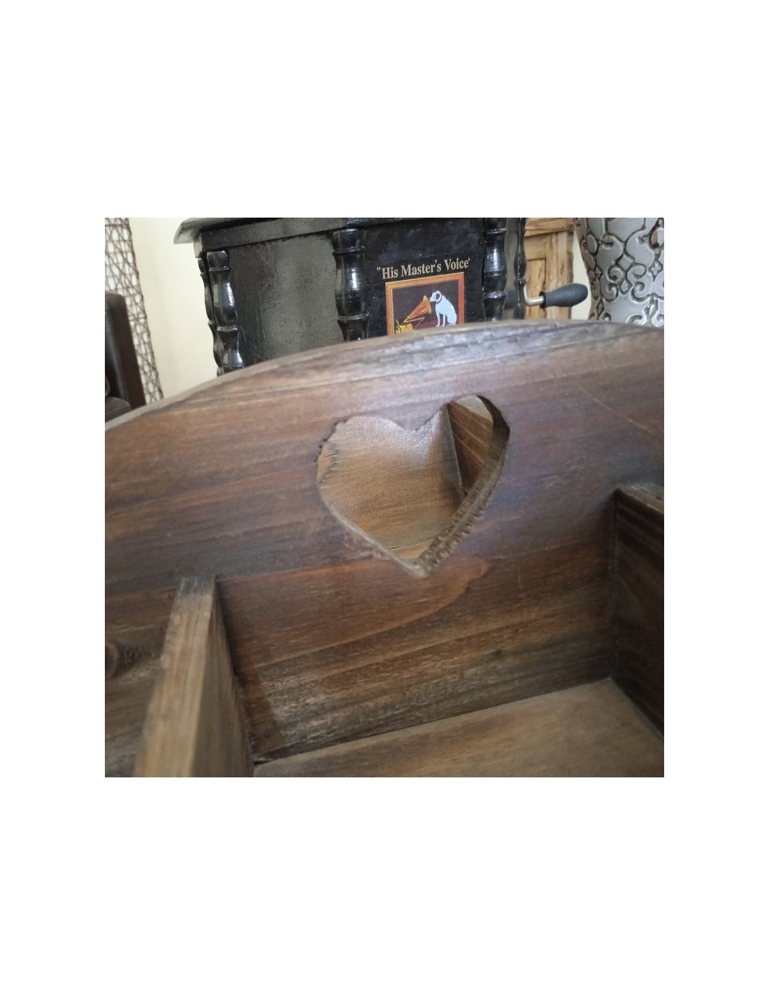 Élégant plateau en bois avec poignée en forme de cœur – Couleur noyer.