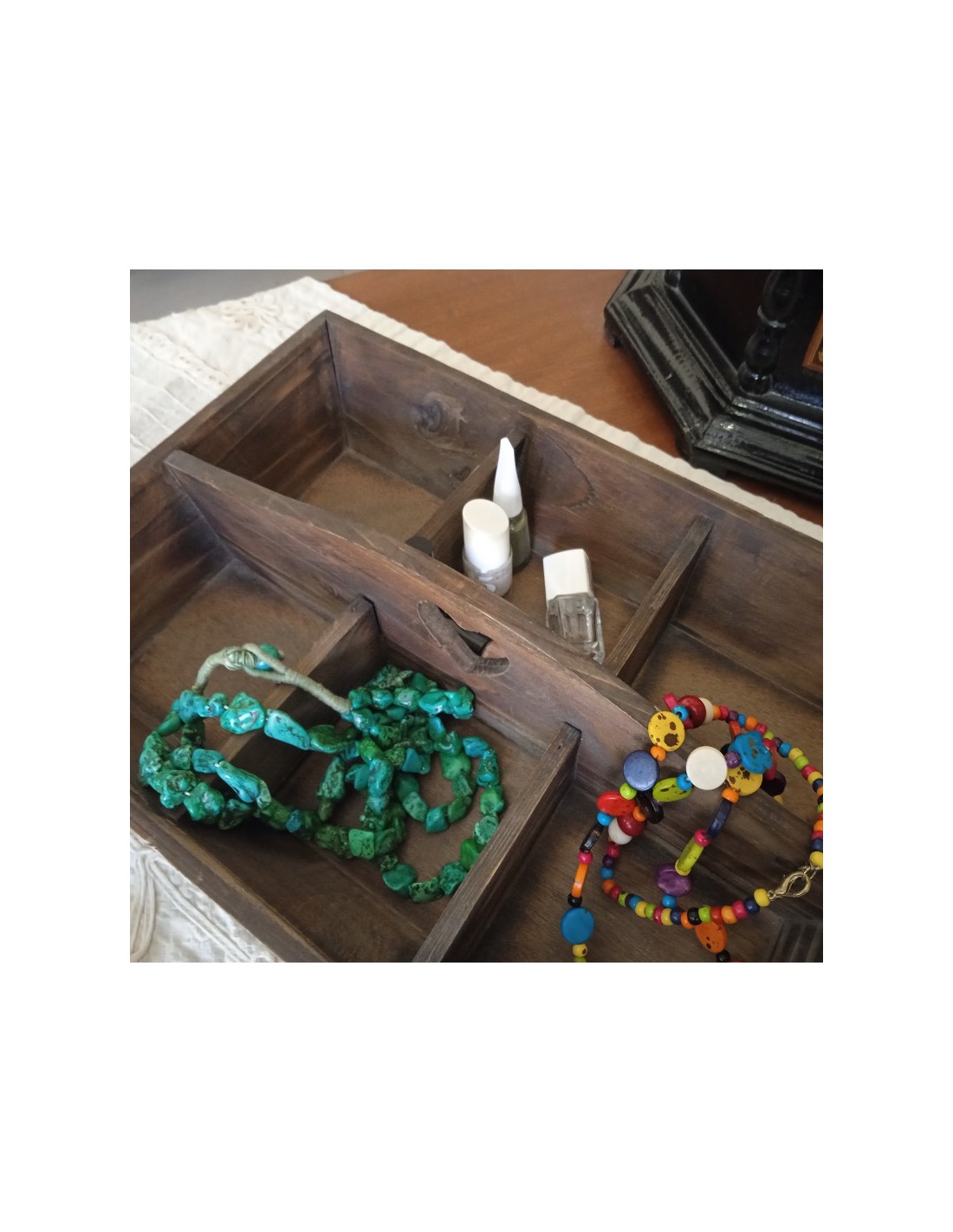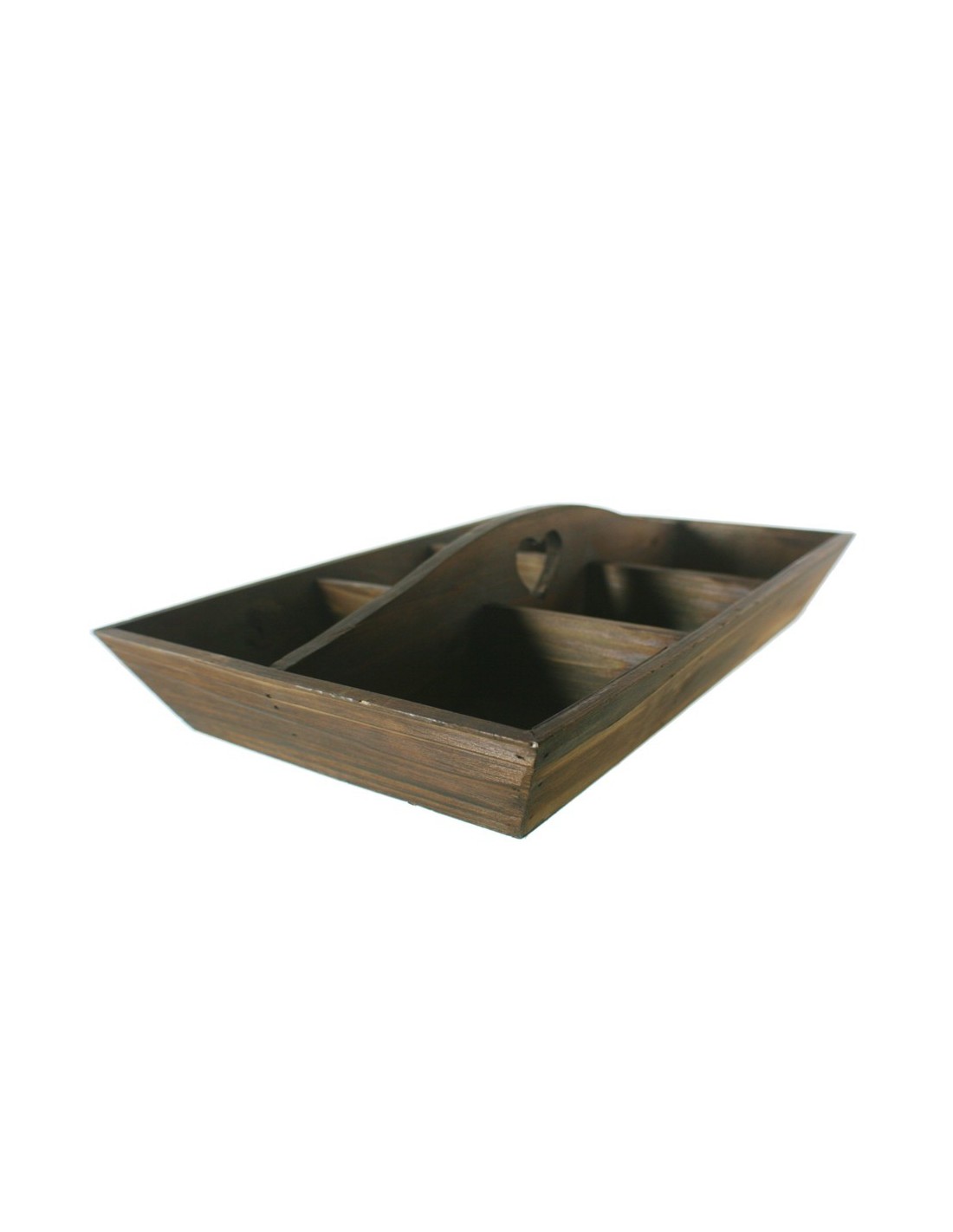 Plateau en Bois Massif Avec 6 Divisions et Poignée, Decoration D'intérieur de Style Rustique. Dimensions : 9x45x30 cm.