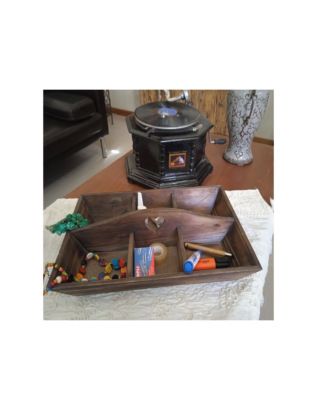 Découvrez cet élégant plateau en bois couleur noyer doté d'une poignée centrale en forme de cœur. Avec six divisions intermédiaires, il est idéal pour organiser votre bureau ou vos articles de maquillage. Une touche de style et de fonctionnalité pour votre maison !