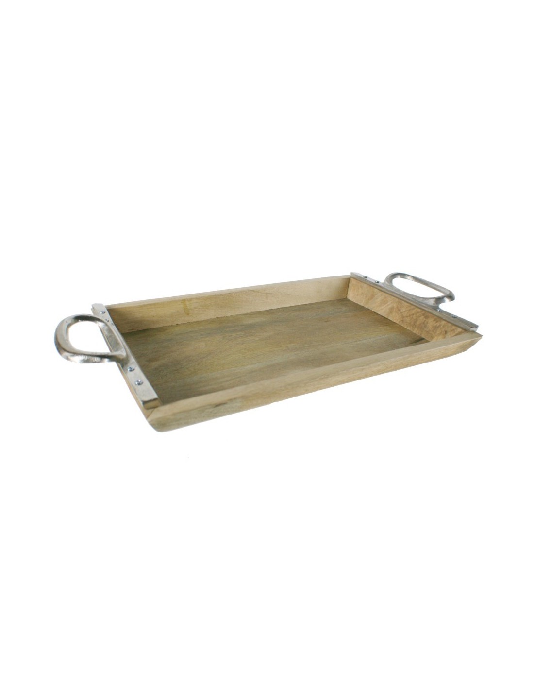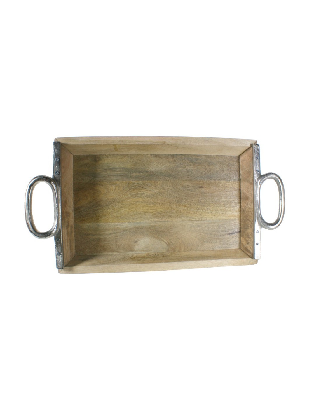 Plateau en bois massif naturel avec poignées en métal : un style rustique pour votre maison
