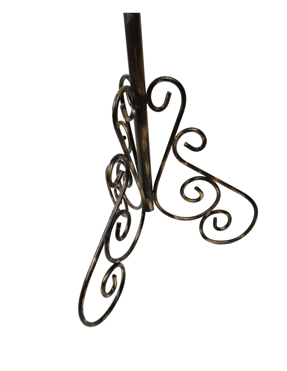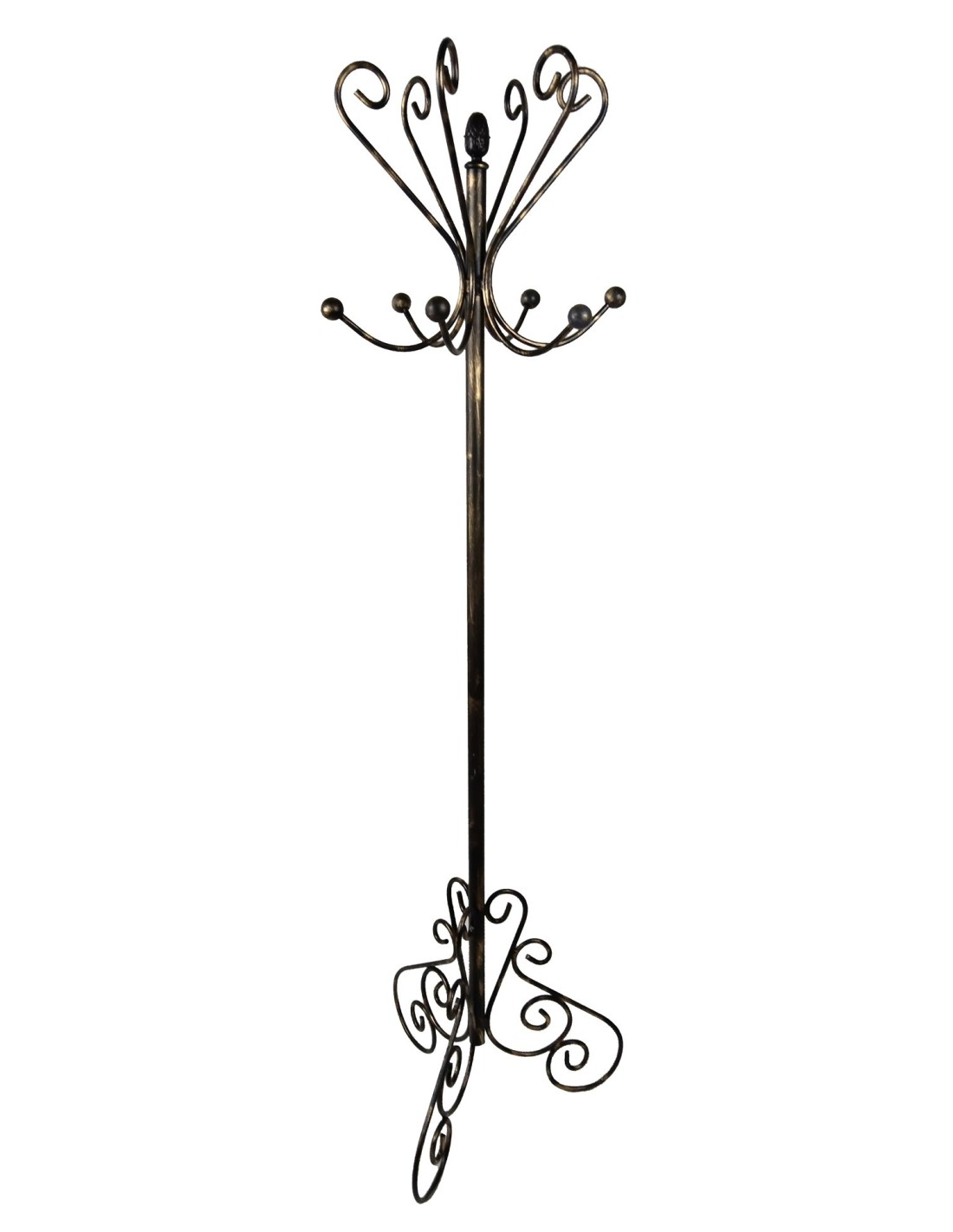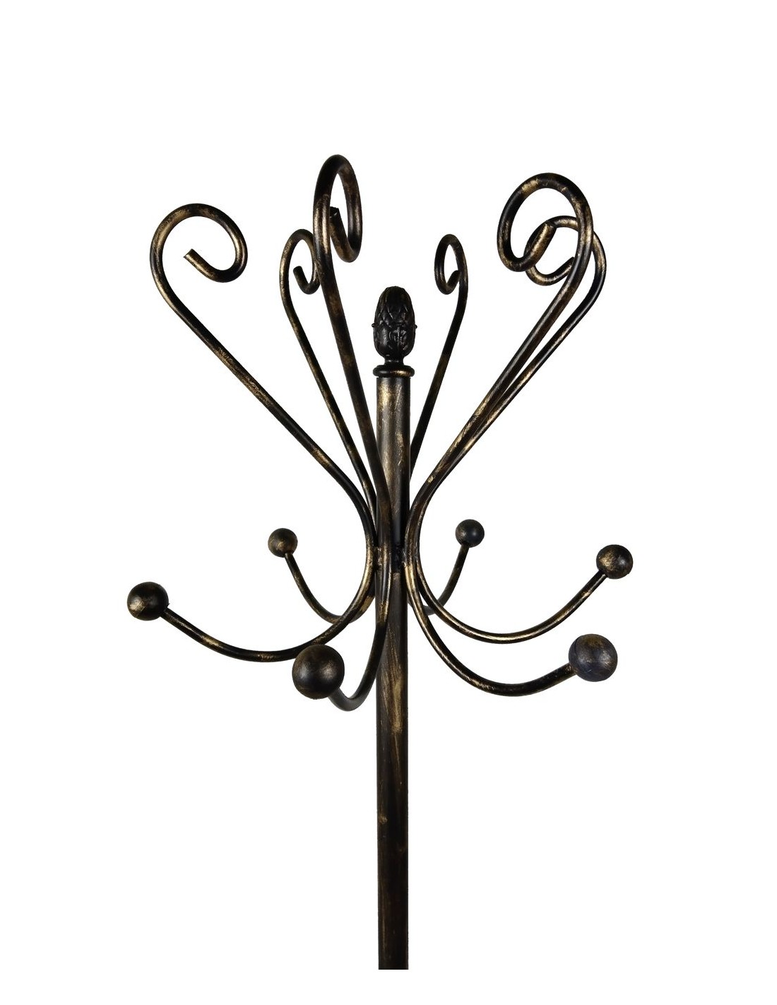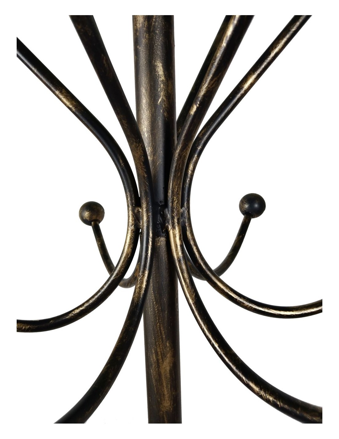 Porte-manteau sur pied en fer forgé couleur noir-or, tête pivotante avec six crochets. Mesures : 180X50 cm.