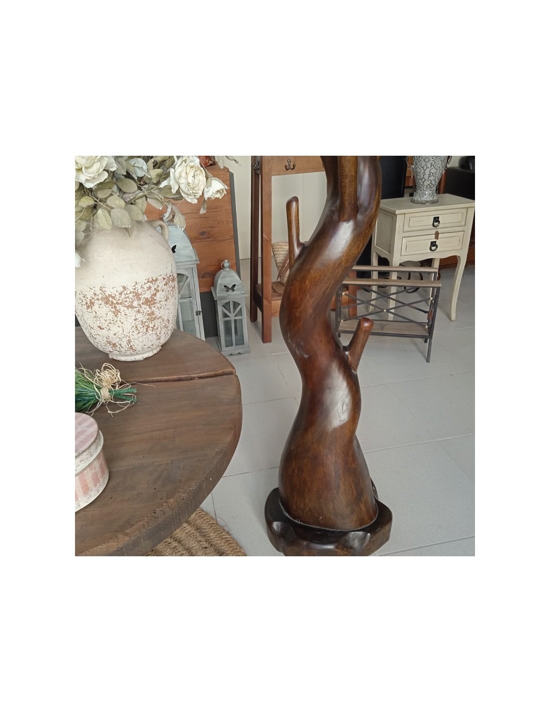 Porte-manteau élégant et particulier en tronc de racine avec des cintres en bois naturel. Son originalité donnera une touche différente dans votre salon et votre maison.