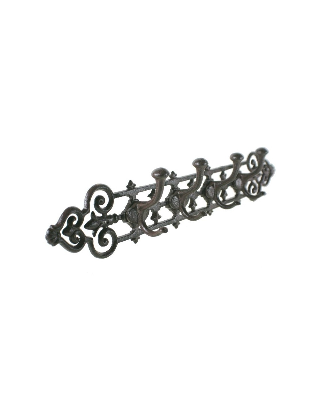 Cintre en fonte avec 4 crochets pour mur. Mesures: 11x54x7 cm.