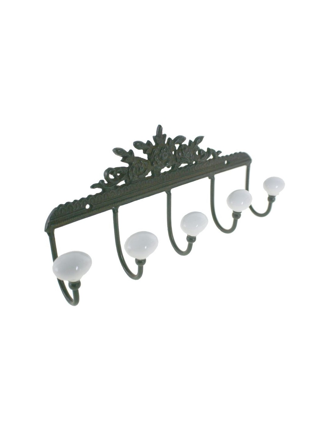 Cintre en métal avec frise de fleurs avec cinq crochets en porcelaine. Dimensions: 13x28x6 cm.