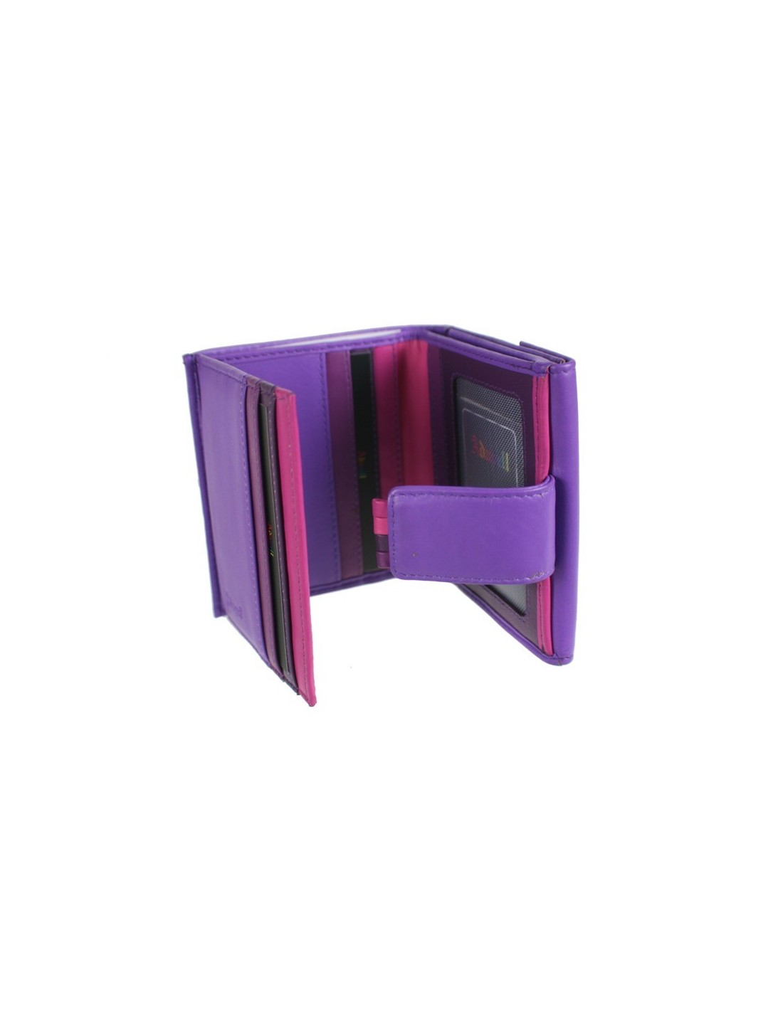 Lila bourse de portefeuille pour la dame avec des compartiments déroulants. Composition 100% peau de bœuf.