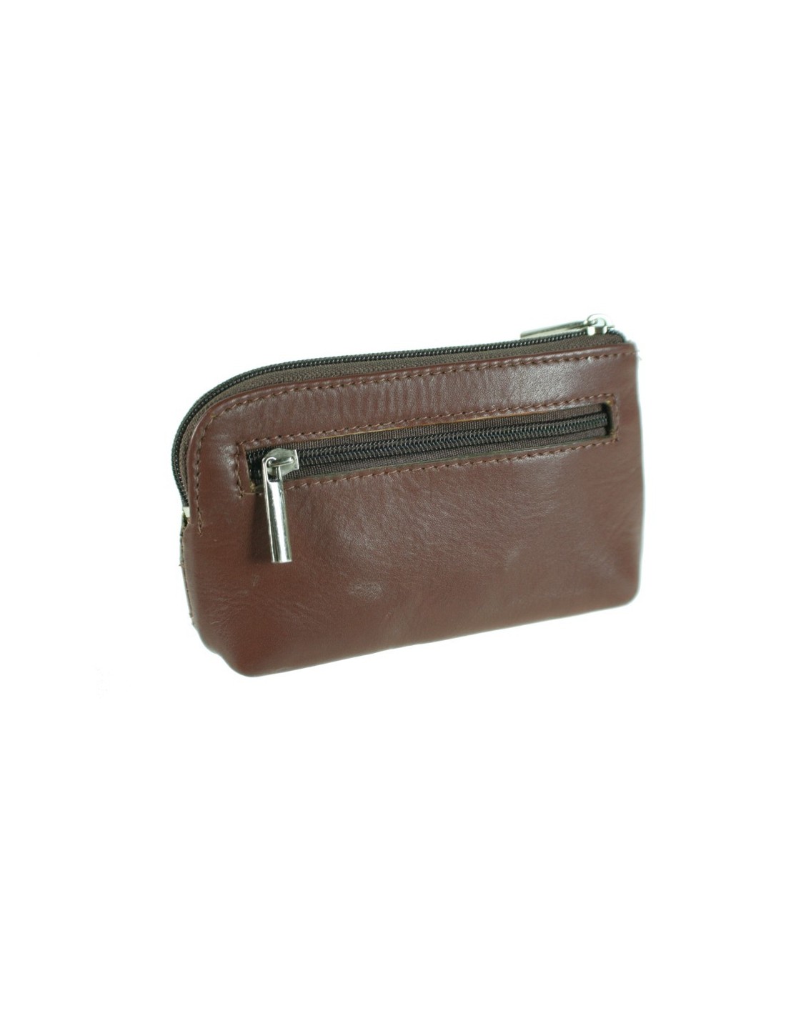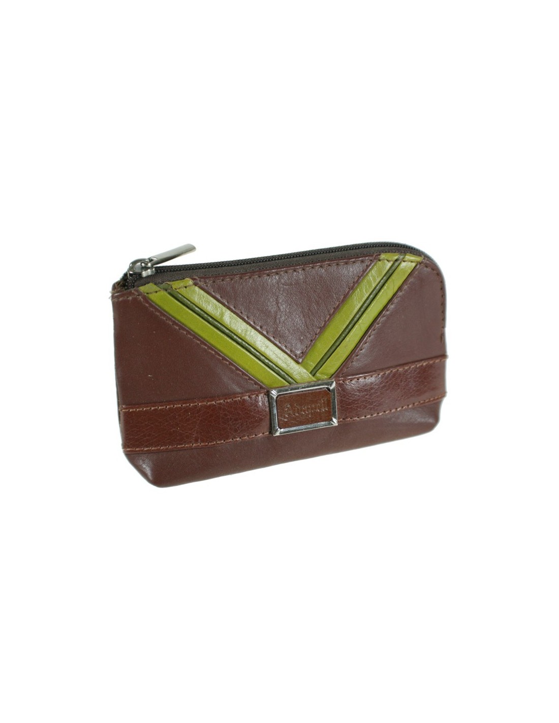 Porte-clés en cuir marron et vert unisexe pour sac à fermeture éclair. Dimensions : 8x12x3 cm.