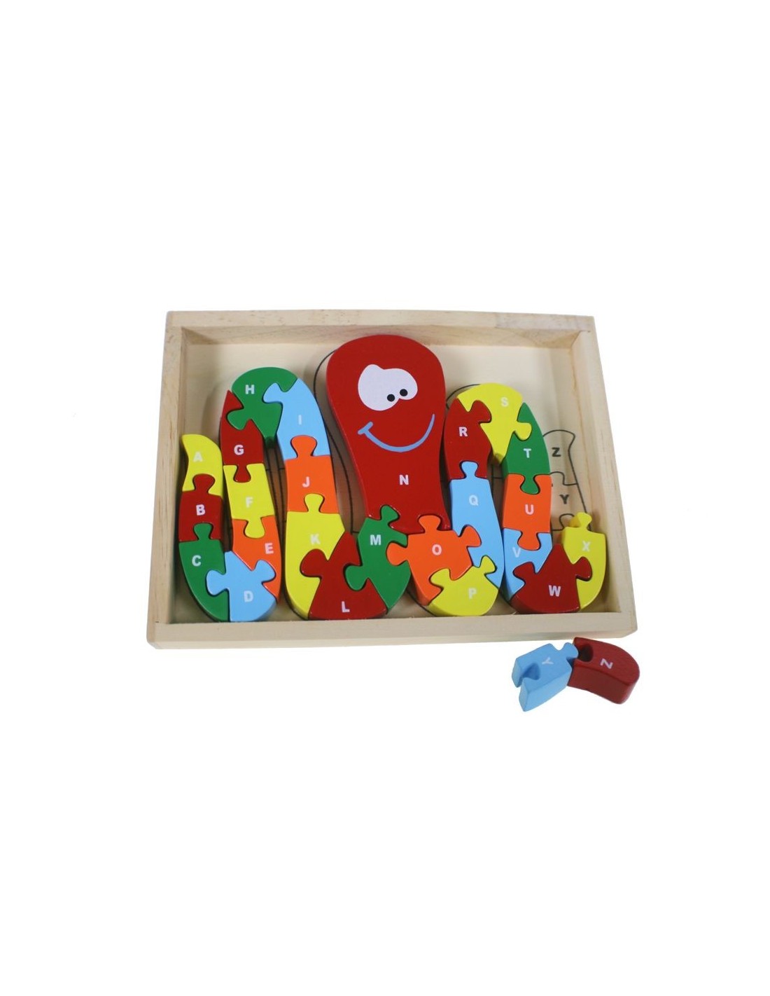Ce puzzle en bois en forme de pieuvre est une façon amusante d'apprendre l'alphabet et les chiffres. Ses bras affichent les lettres de A à Z et, au dos, les chiffres de 1 à 26, alliant jeu et apprentissage en une seule pièce.