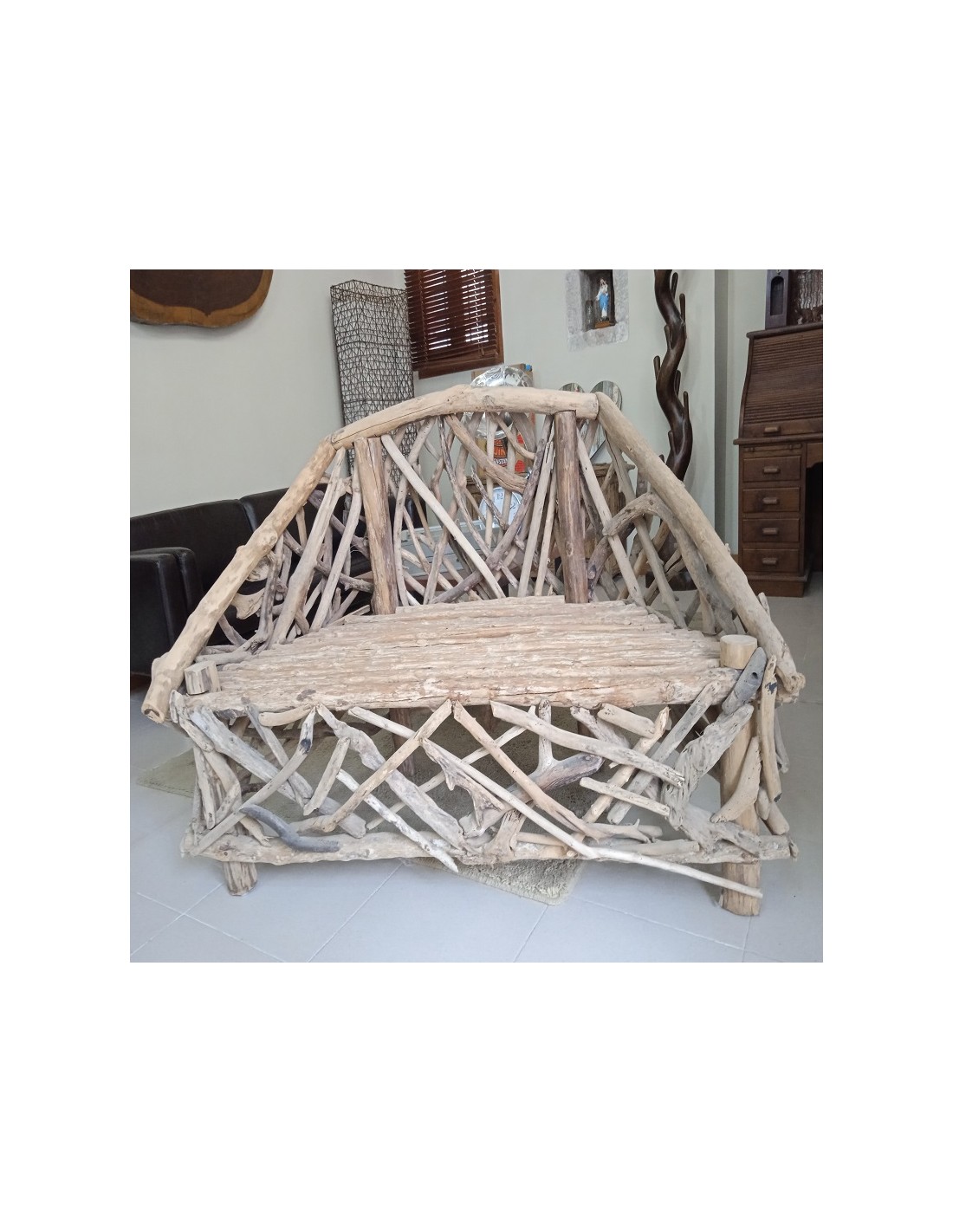 Banc décoratif en bois de récupération, unique et très original. Sa structure unique en fait une pièce exclusive, idéale pour les maisons de campagne ou pour apporter une touche d'originalité à n'importe quel espace de la maison.