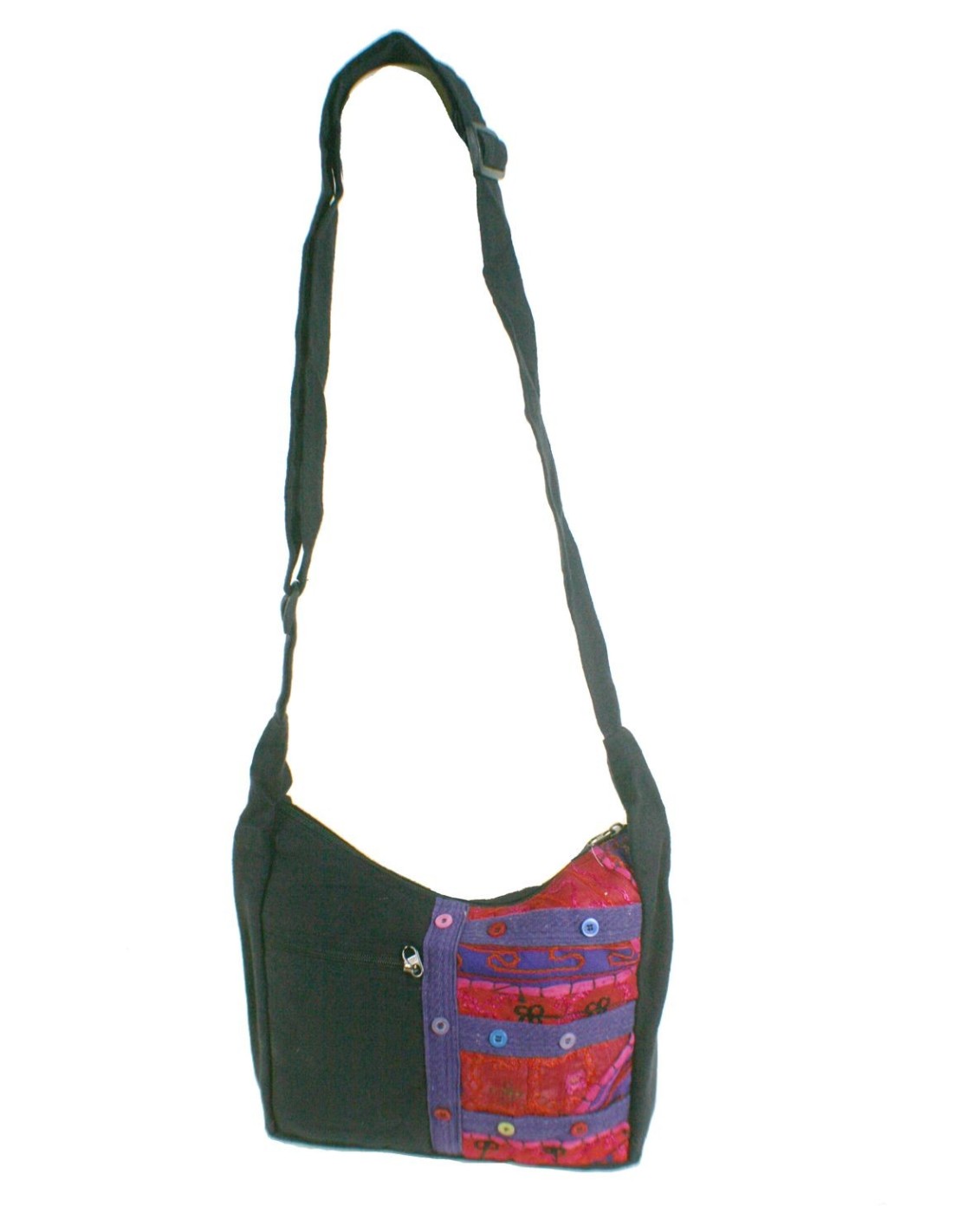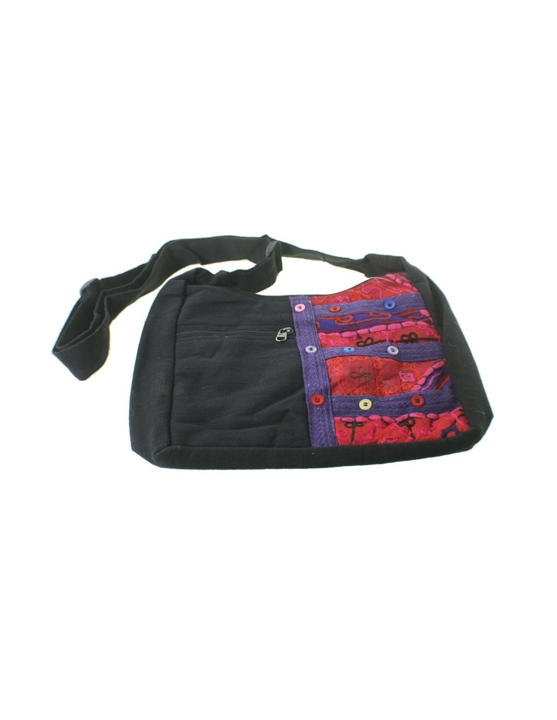 Sac à bandoulière polyvalent en intérieur noir avec poche et fermeture zippée, hippie brodé au design ethnique exclusif. Ce vêtement a été fabriqué à la main au Népal. Ce sac peut devenir un indispensable au quotidien dans lequel vous pourrez transporter vos objets.