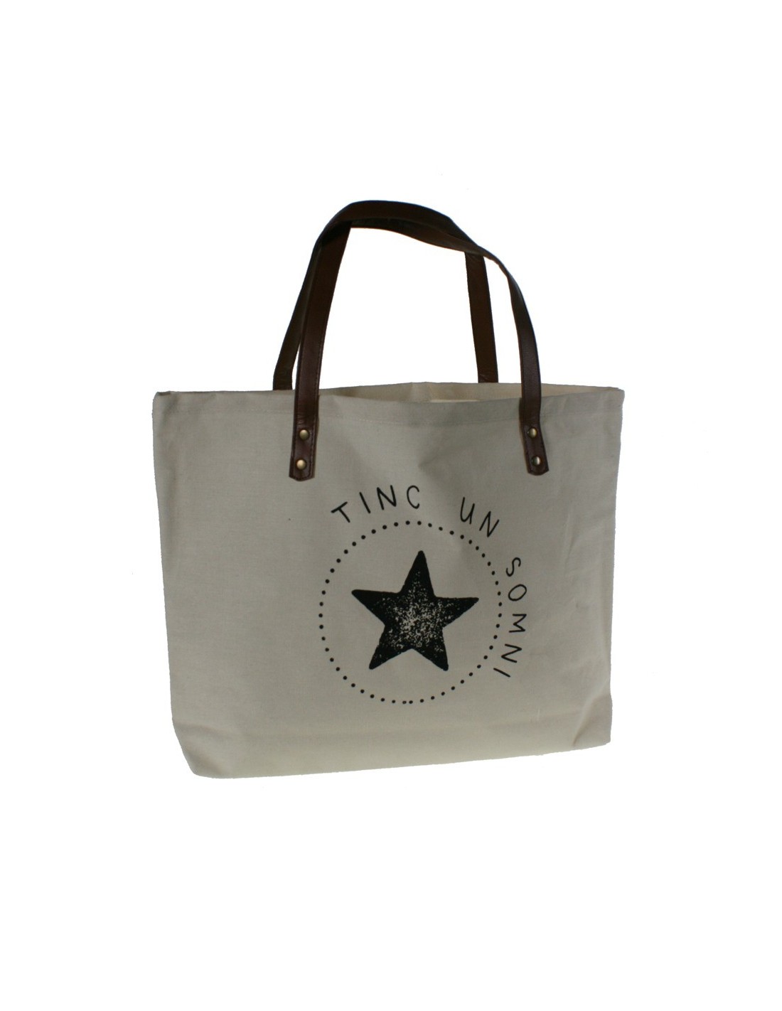 Sac à bandoulière polyvalent avec des poignées en simili cuir de bonne capacité et avec le slogan frappant TINC UN SOMNI. Idéal pour la plage où vous pouvez tout emporter. Sac amusant, facile à utiliser et parfait à tout moment.