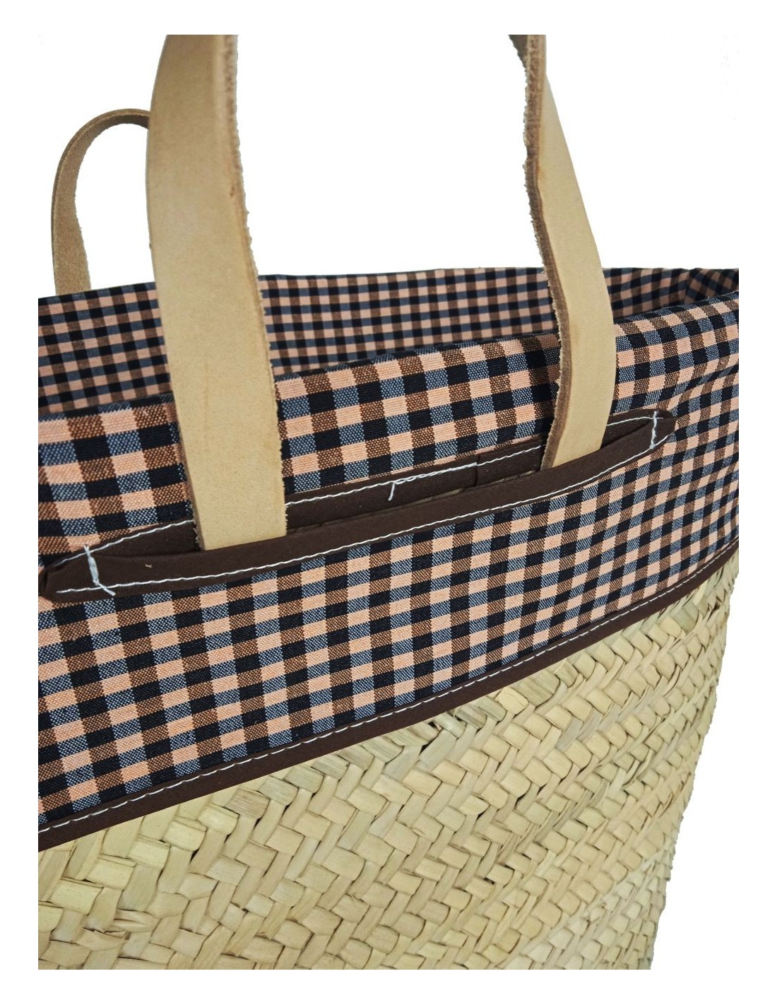 Panier en feuilles de palmier de Majorque avec poignées en cuir