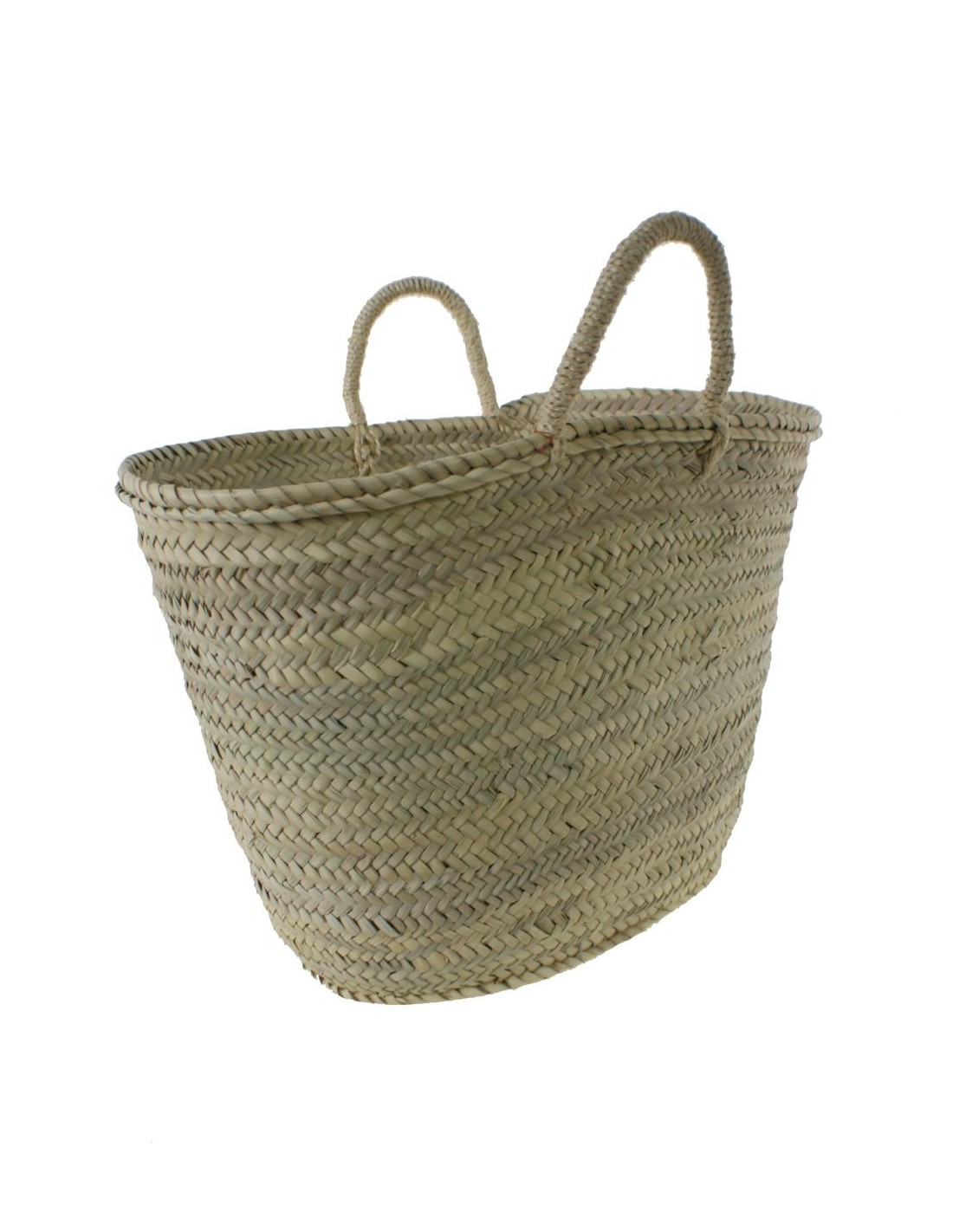 Panier majorquin traditionnel en feuille de palmier avec anse en corde. Mesures : 33x55 cm.
