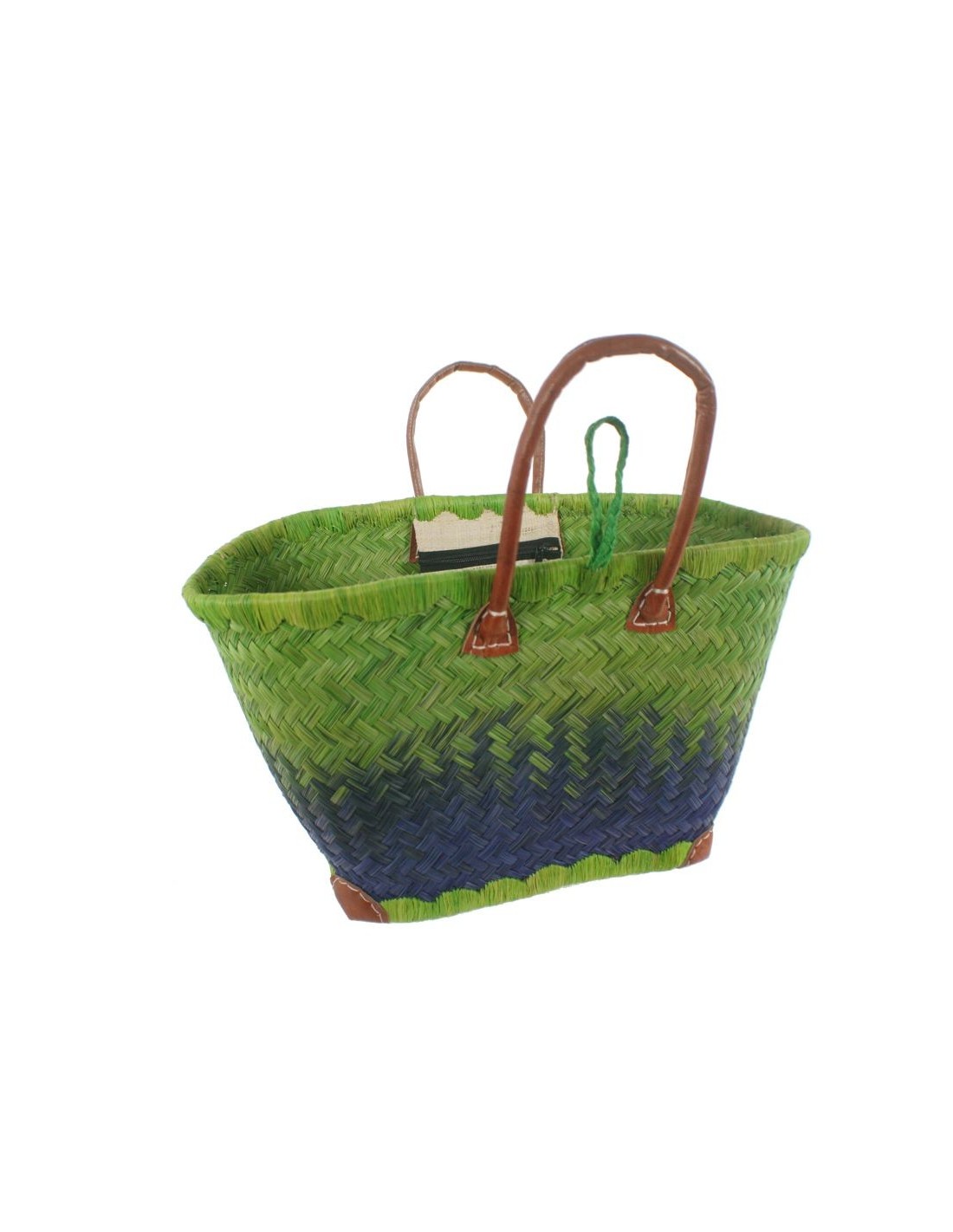 Pour des achats dans votre magasin habituel, cette nacelle à la construction en raphia très résistante, avec des poignées en cuir et un coloris vert et bleu audacieux pour un transport de manière traditionnelle et écologique. Article de fabrication nationale réalisé manuellement par des artisans.