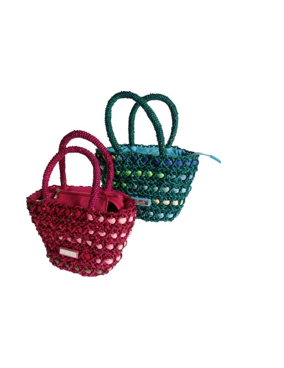 Sac à main fille en raphia grenat. Dimensions: 17x14x25 cm.