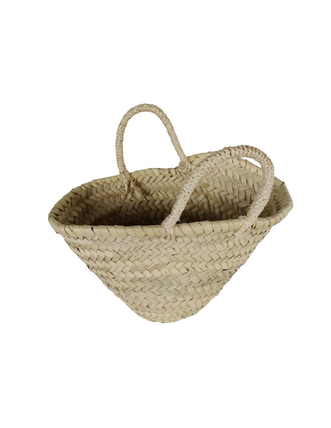 Nacelle pour enfants, sac en raphia et poignée en corde, produit fait à la main. Dimensions : 7x28x18 cm.