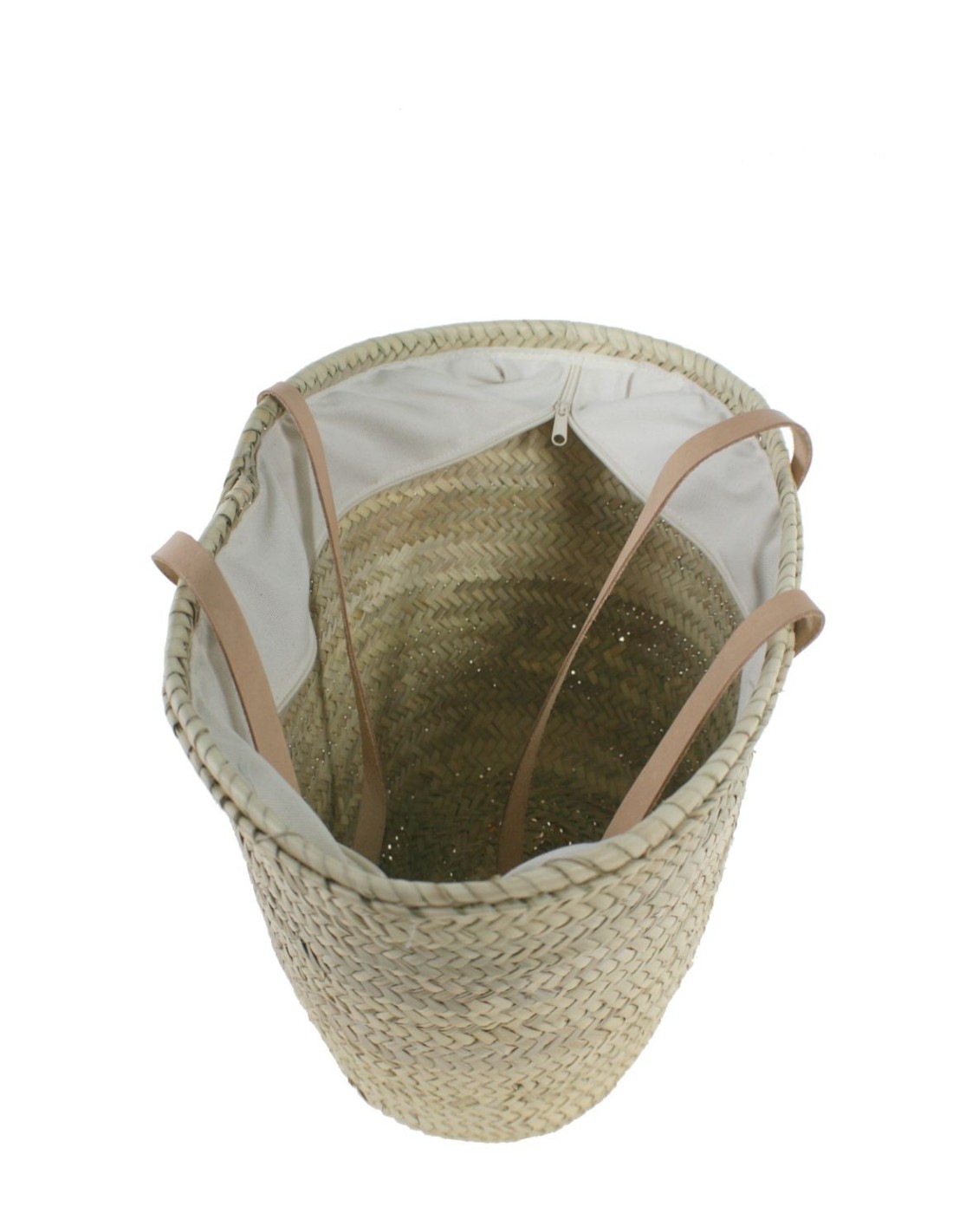 Nacelle Mallorquin fermée couleur brut en fibre de palmier. Dimensions: 36x55x28 cm.