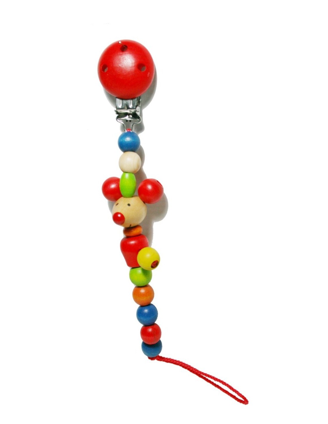 Chaîne tétine pour enfants en bois avec une drôle de souris décorative centrale. Cadeau précieux pour bébé.