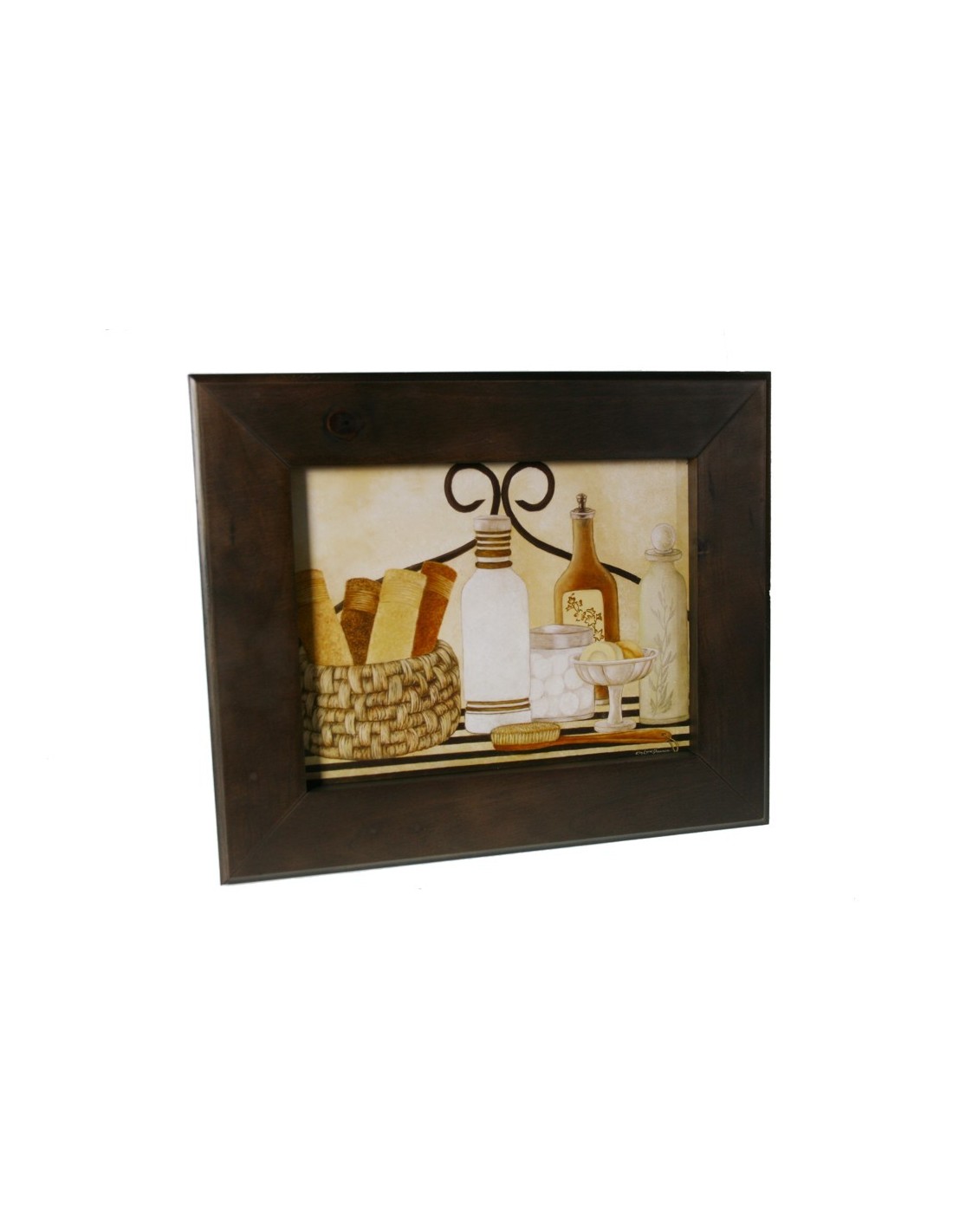 Tableau encadré en bois avec design de salle de bain.