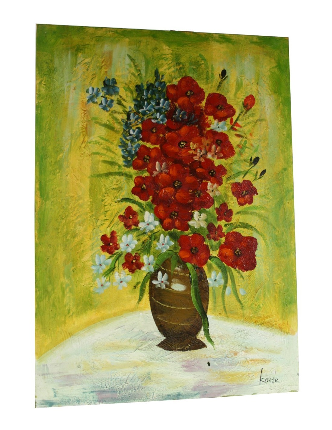 Tableau peint à l'huile avec motifs floraux. Mesures: 87x61 cm.