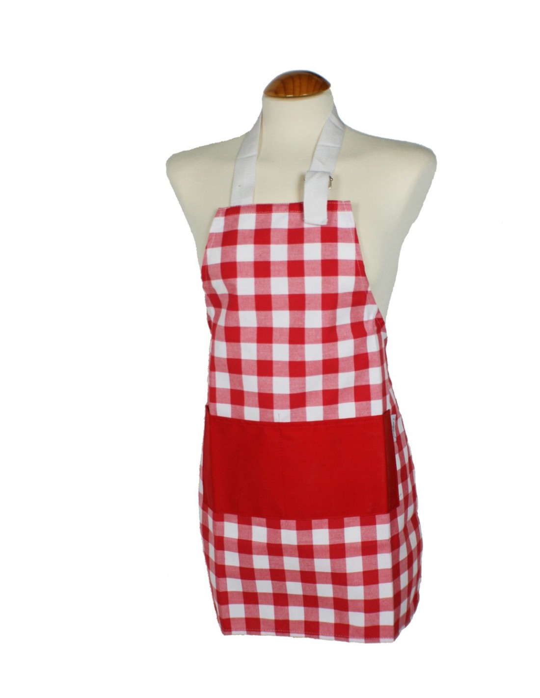 Tablier pour enfants avec un chapeau à carreaux rouge.