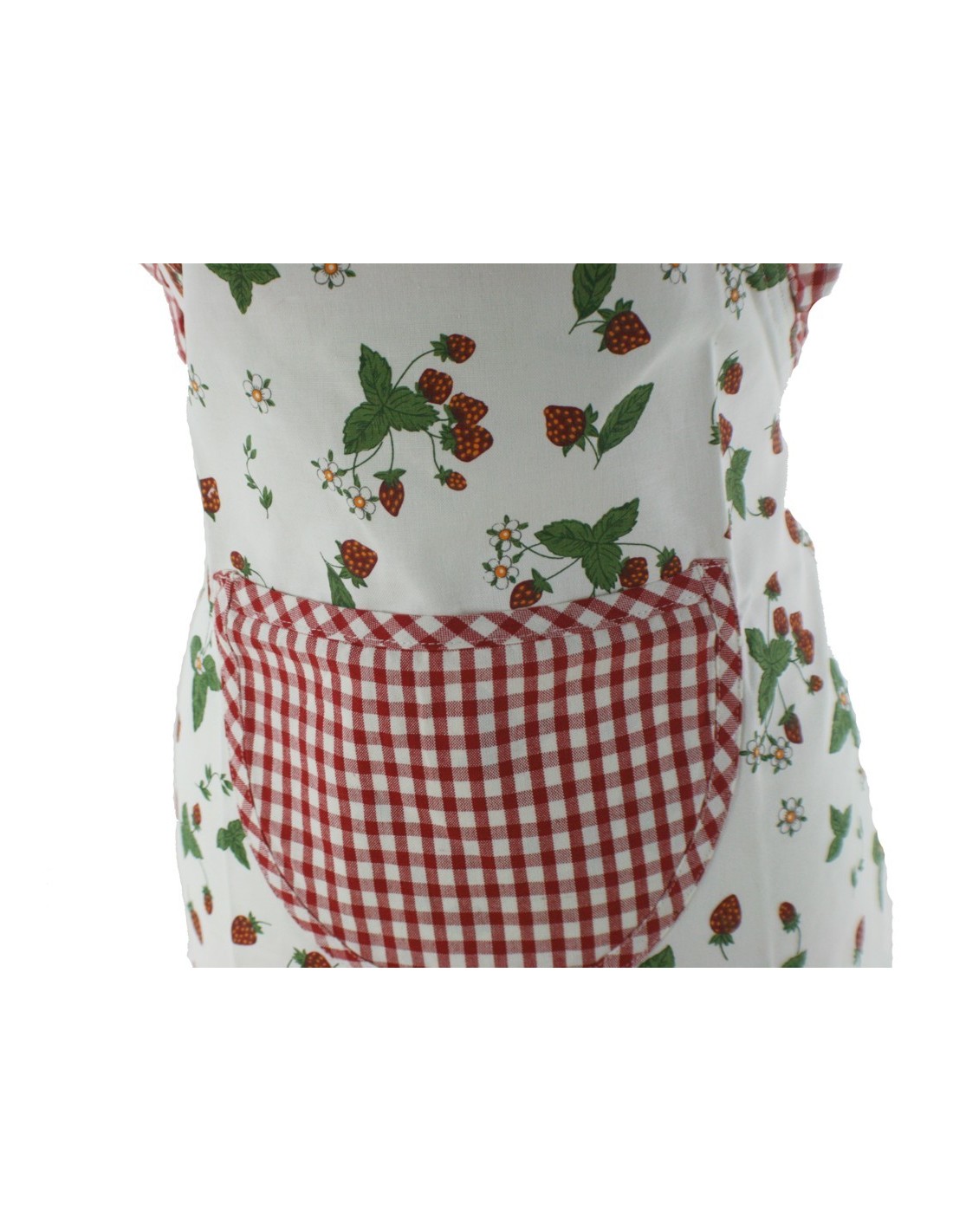 Tablier enfant avec dessin fraise et poche centrale idéal pour un cadeau d'anniversaire enfant. Mesures totales: 65x50 cm.