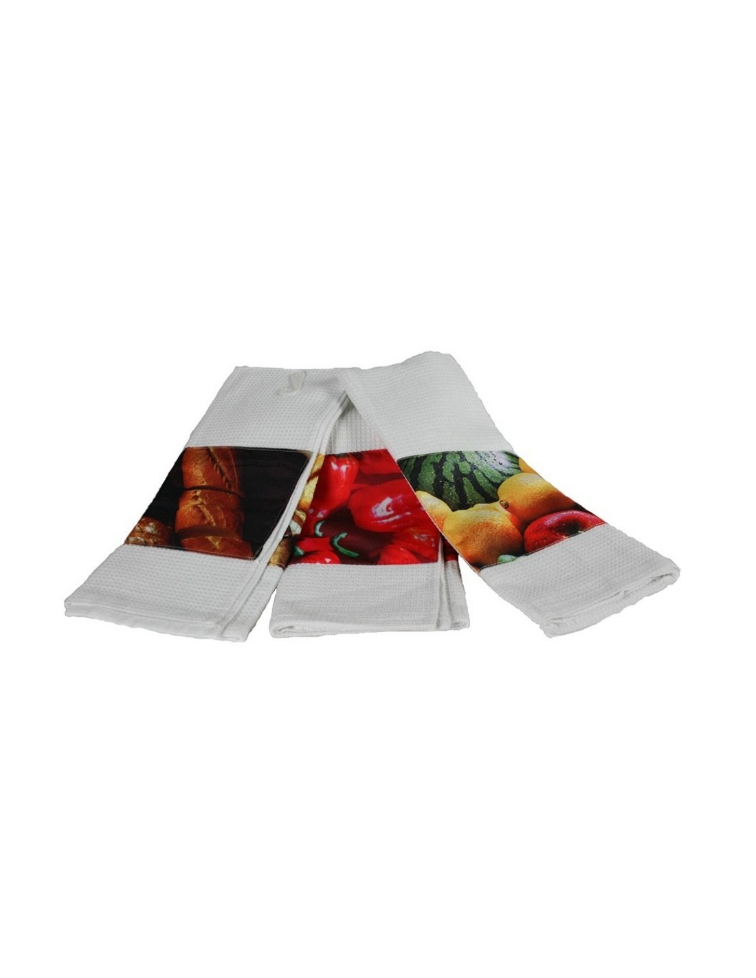 Serviette de cuisine blanche avec dessin. Mesures: 38x64 cm.