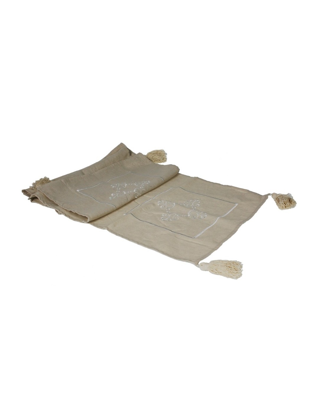 Chemin de table avec broderie crème. Dimensions: 150x40 cm.