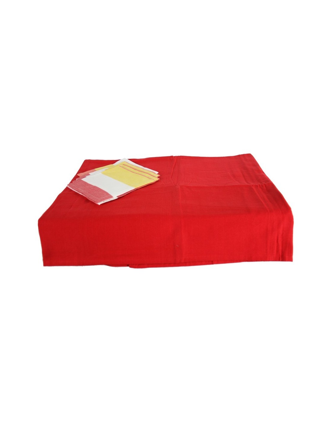 Nappe rouge avec 6 serviettes assorties pour habiller votre table.