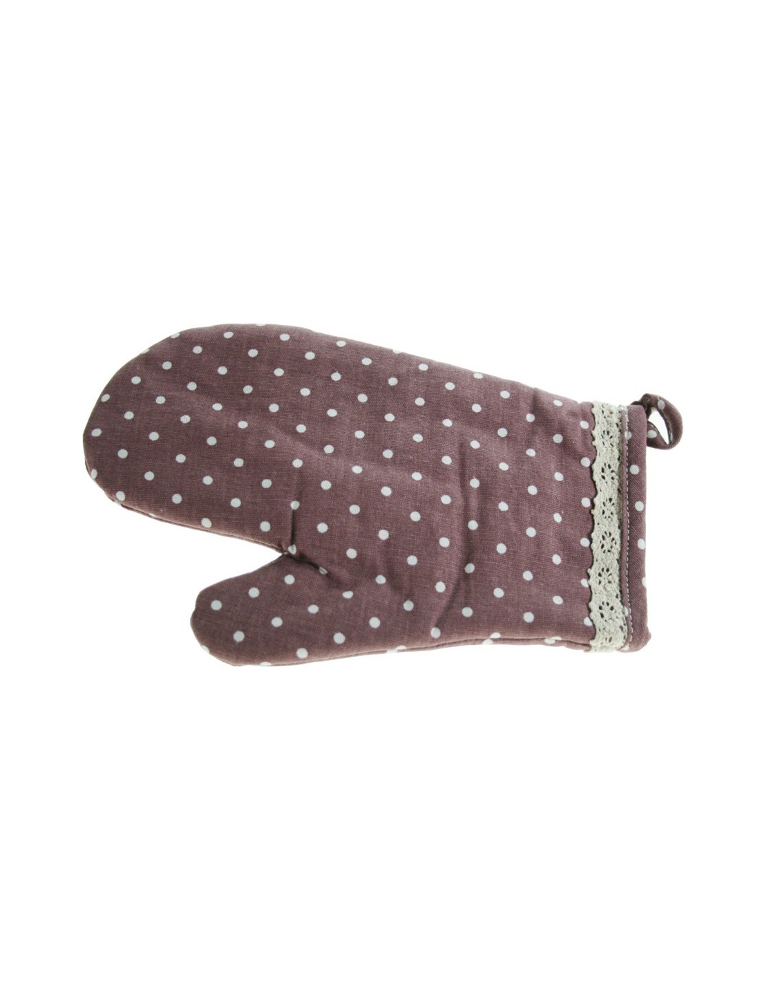 Soyez prudent dans la cuisine! Avec une paire de gants et de maniques, vous et votre table seront protégés. Cette moufle avec un motif à pois et en dentelle et un tissu rembourré est parfaite pour ramasser des casseroles, des plats au four ou tout autre ustensile de cuisine sans se soucier des brûlures