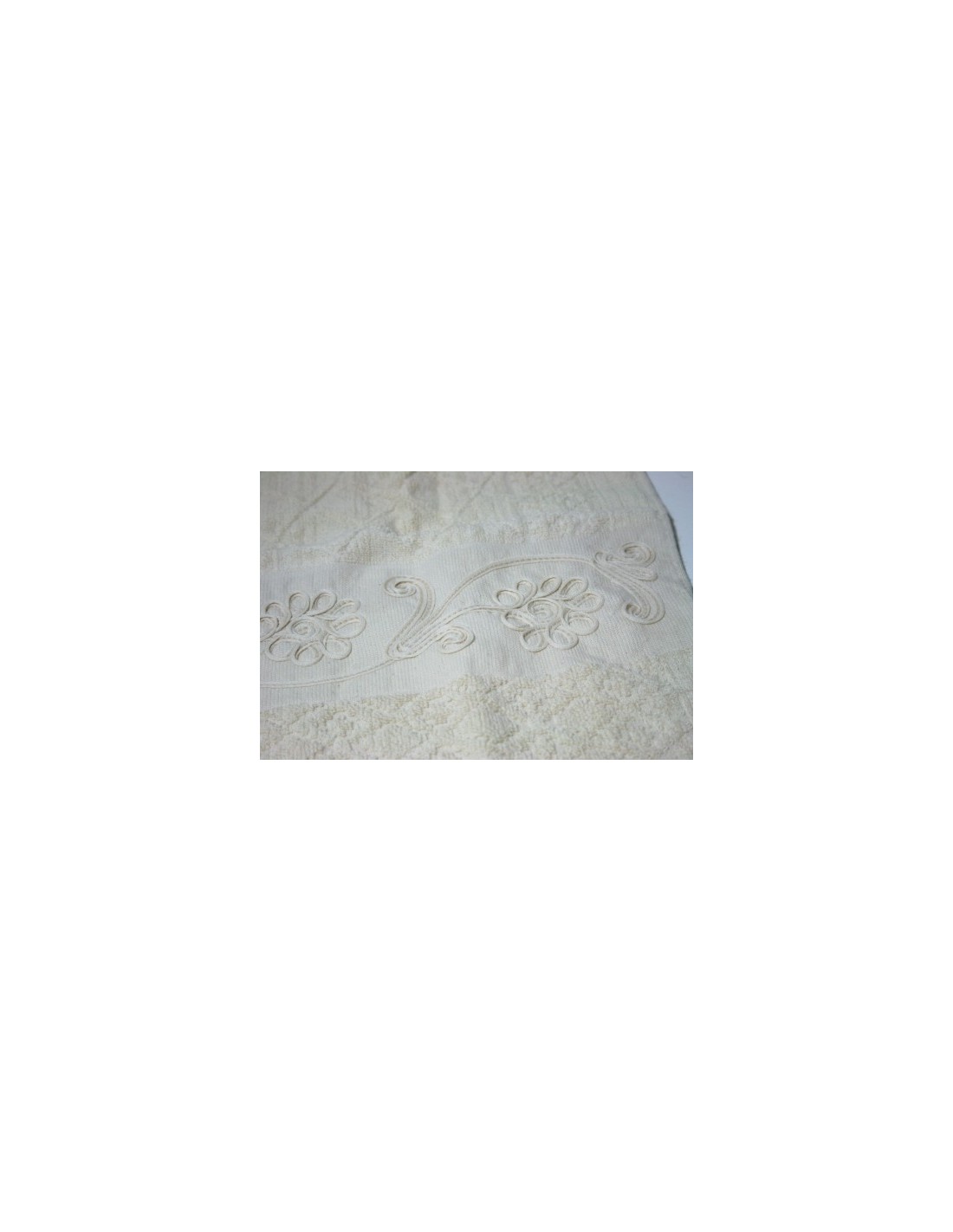 Lot de 3 serviettes de bain écru avec bordure en dentelle de style rustique. Mesure 3 pièces