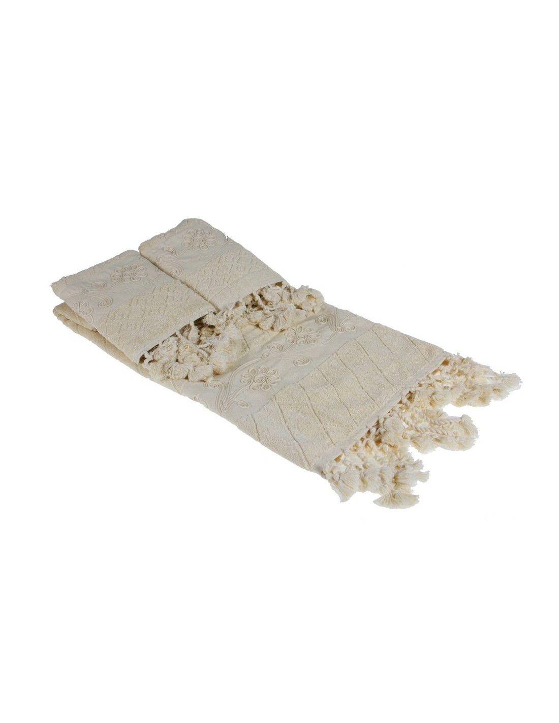 Ensemble de serviettes de bain écru à décor de bordure pour une ambiance de style rustique, il décorera la pièce des toilettes de votre maison et mettra une touche de couleur dans votre quotidien. Un cadeau très original et unique.