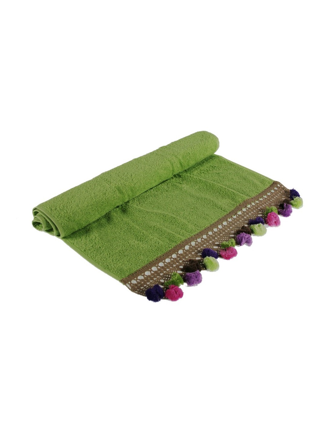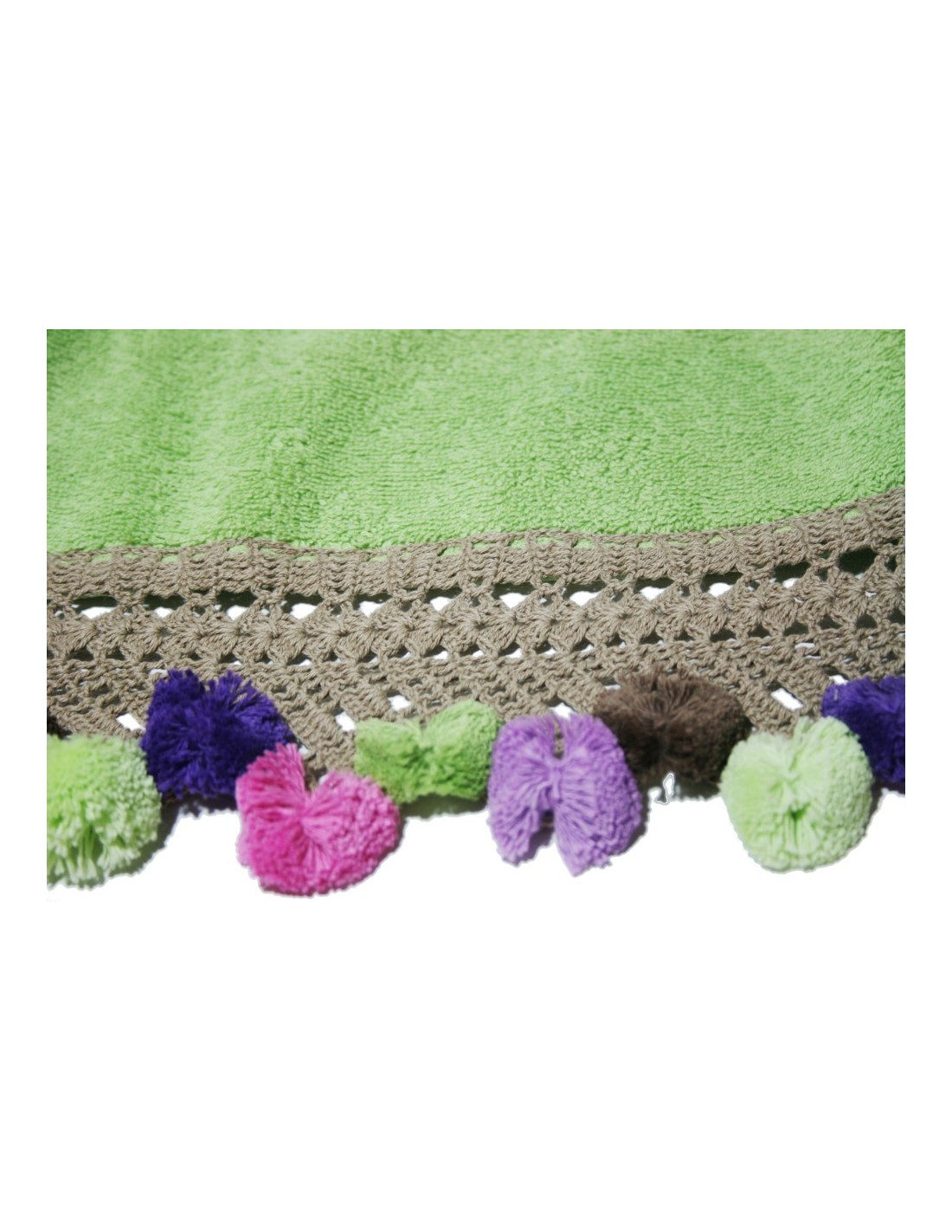 Ensemble de serviettes de bain vertes à décor de bordures au crochet faites à la main et pompons de différentes couleurs pour une ambiance de style vintage, il décorera la pièce de votre toilette domestique et mettra une touche de couleur dans votre quotidien. Un cadeau très original et unique.